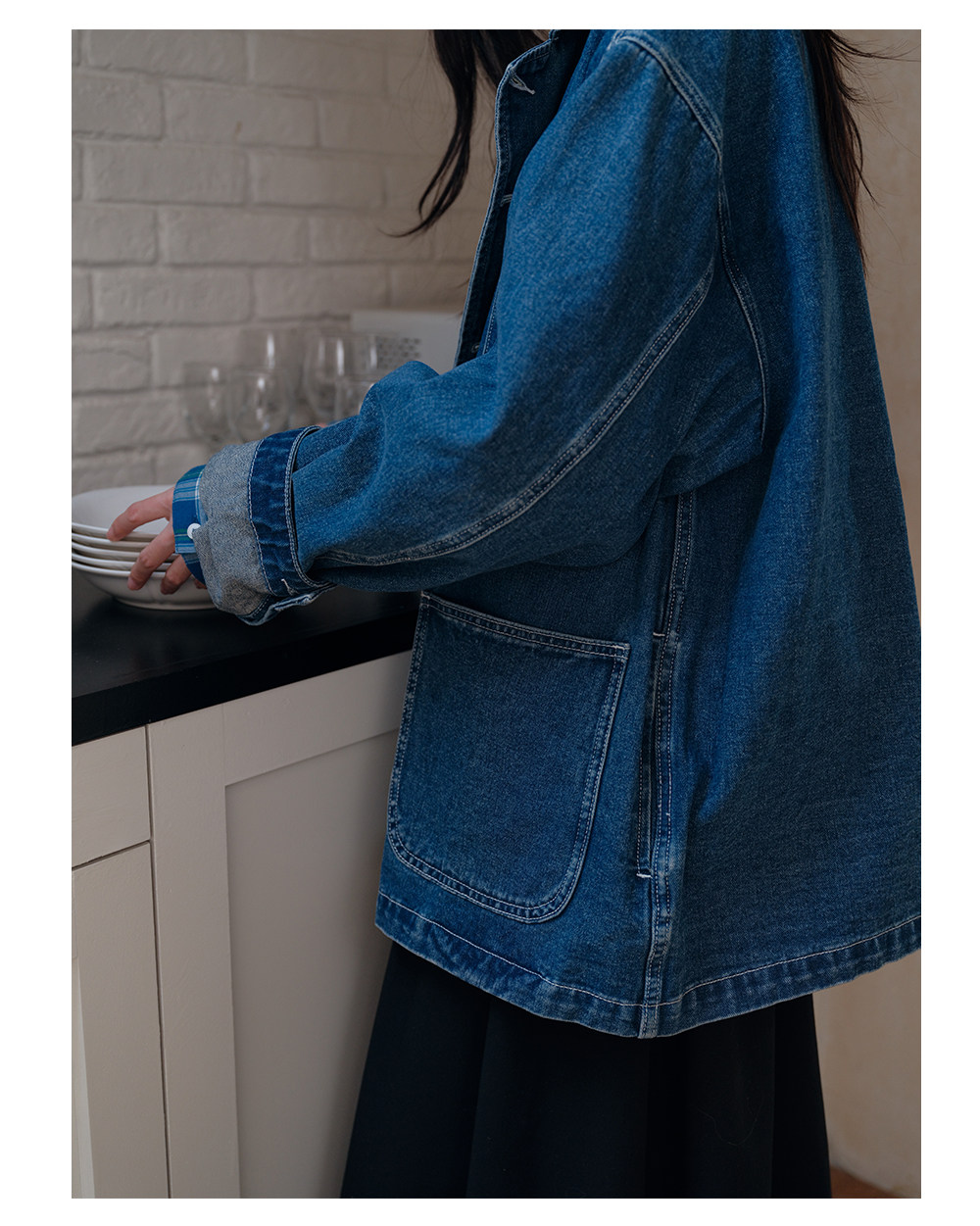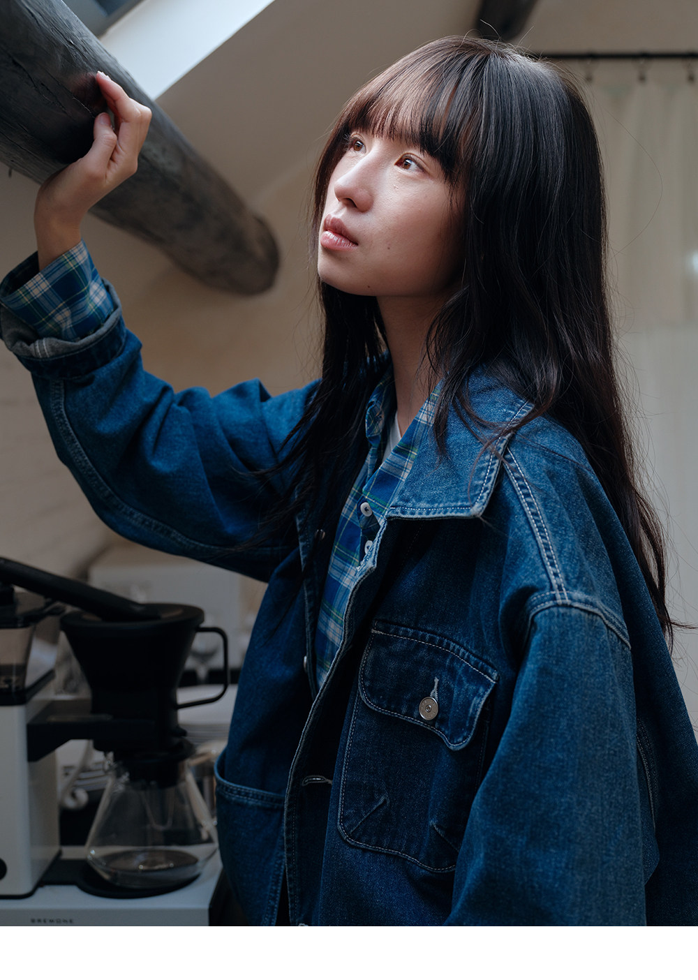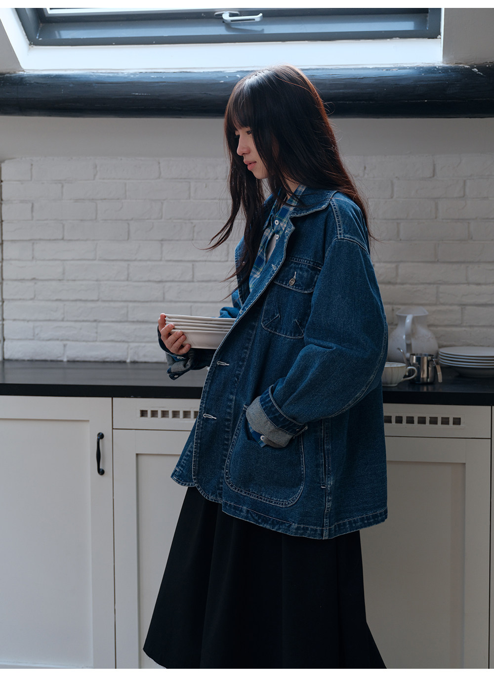 步履不停/5C20024C/长翻领工装水洗蓝牛仔外套