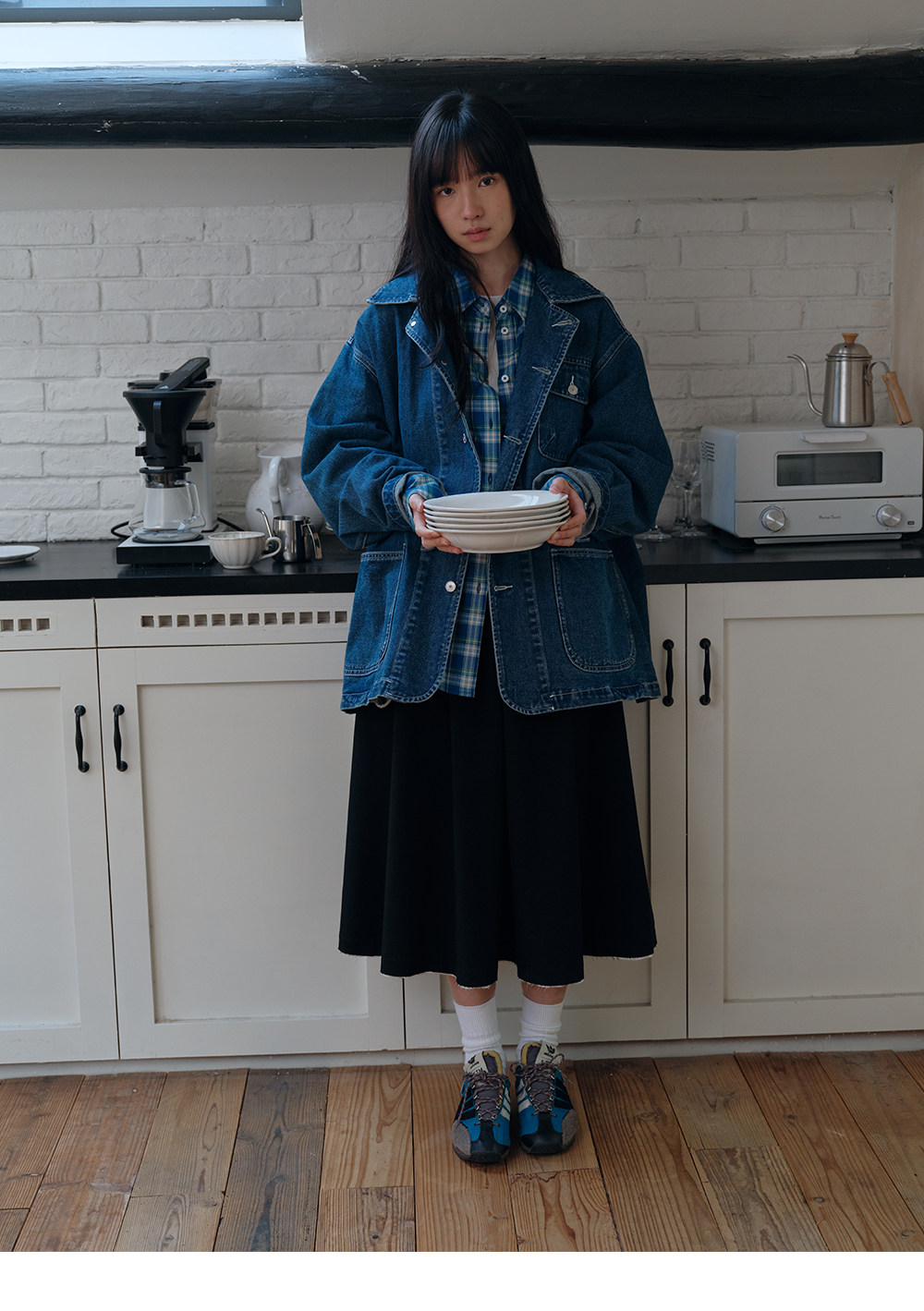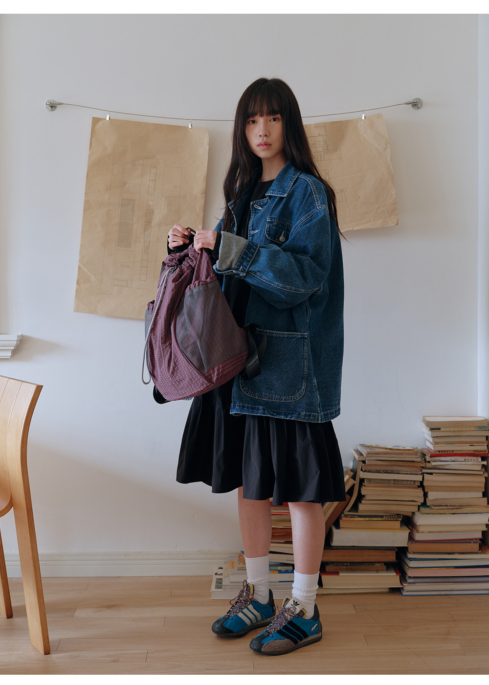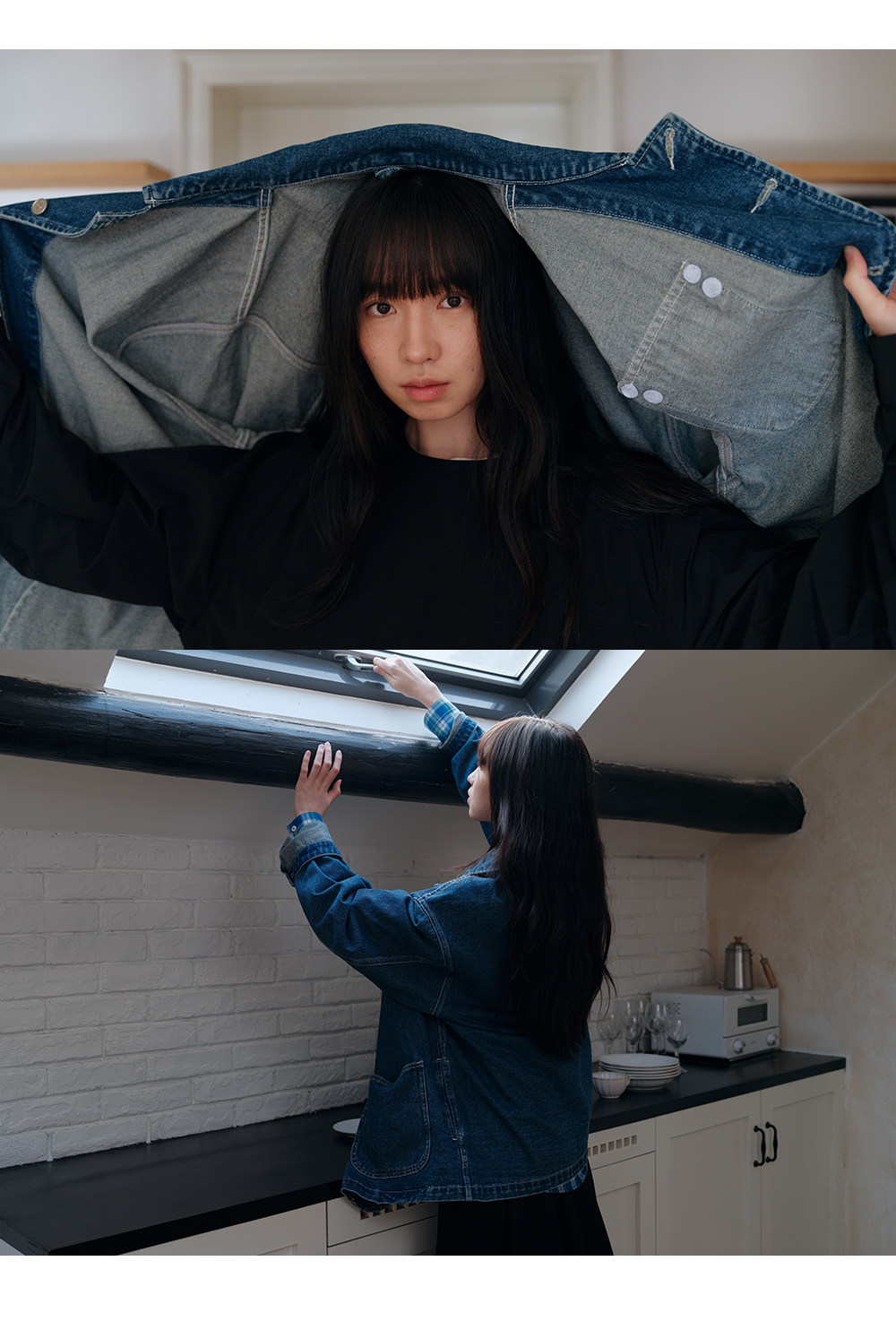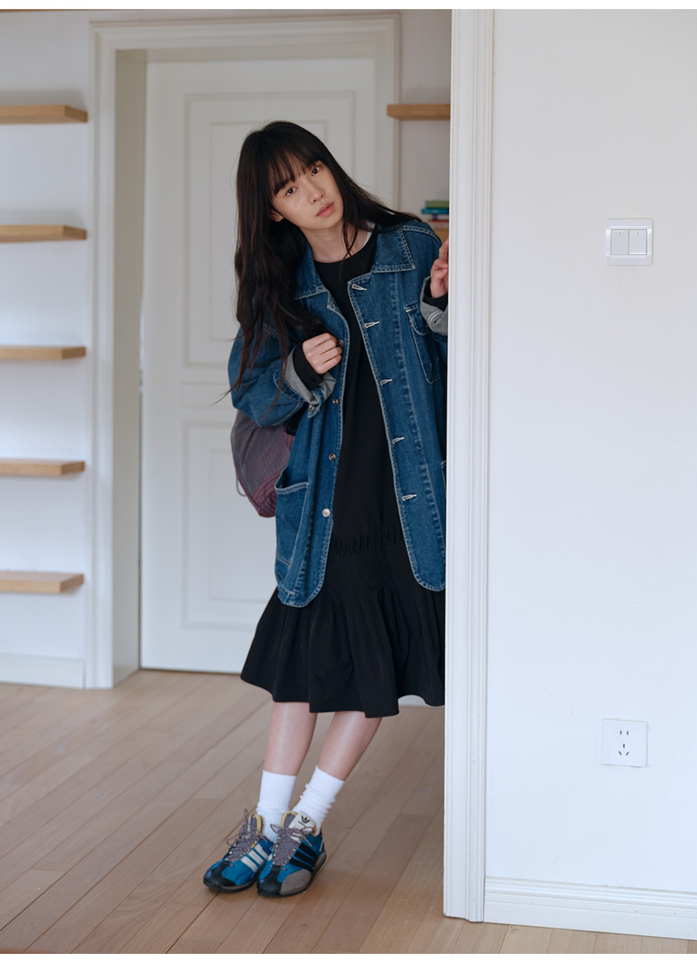 步履不停/5C20024C/长翻领工装水洗蓝牛仔外套
