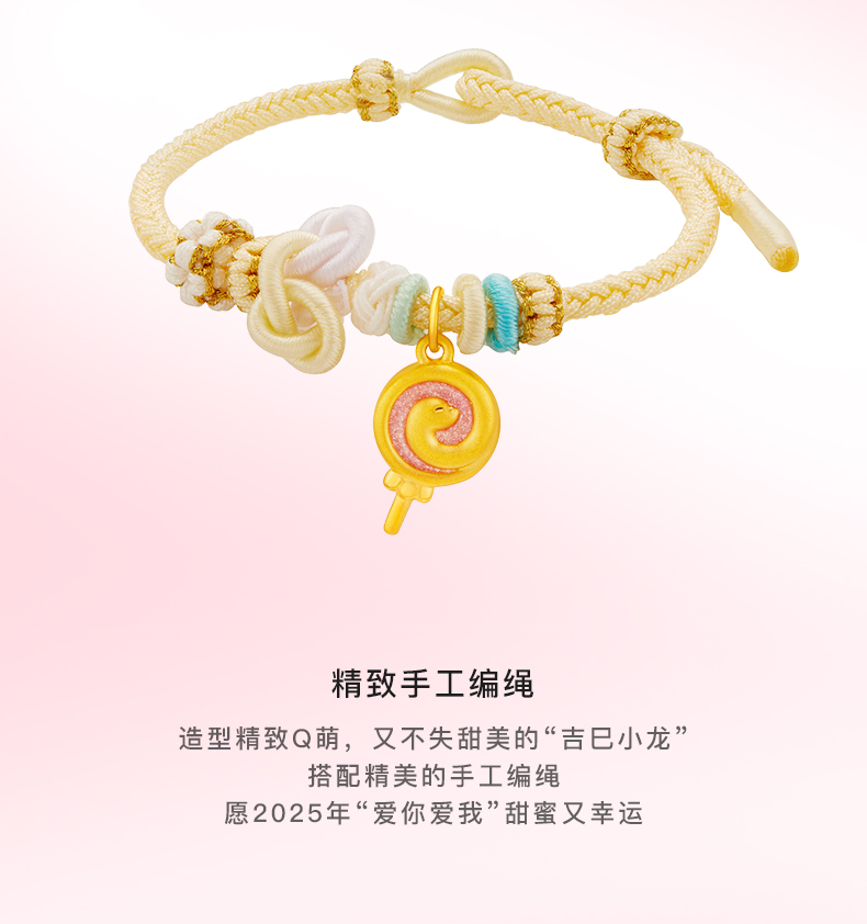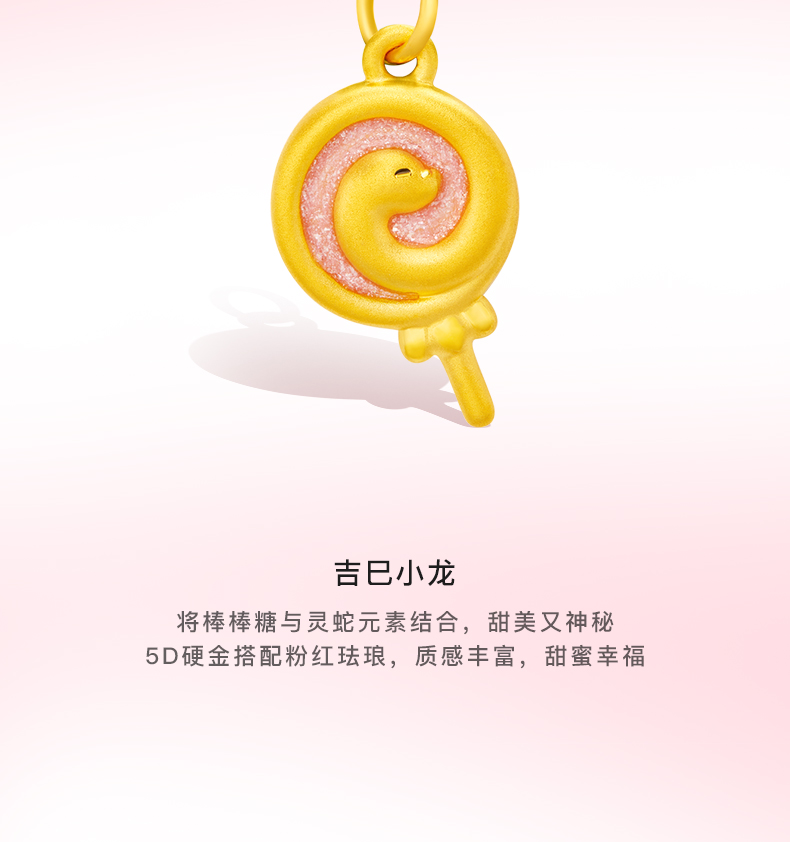 蛇年生肖“吉巳小龙”足金吊坠 黄金棒棒糖挂坠