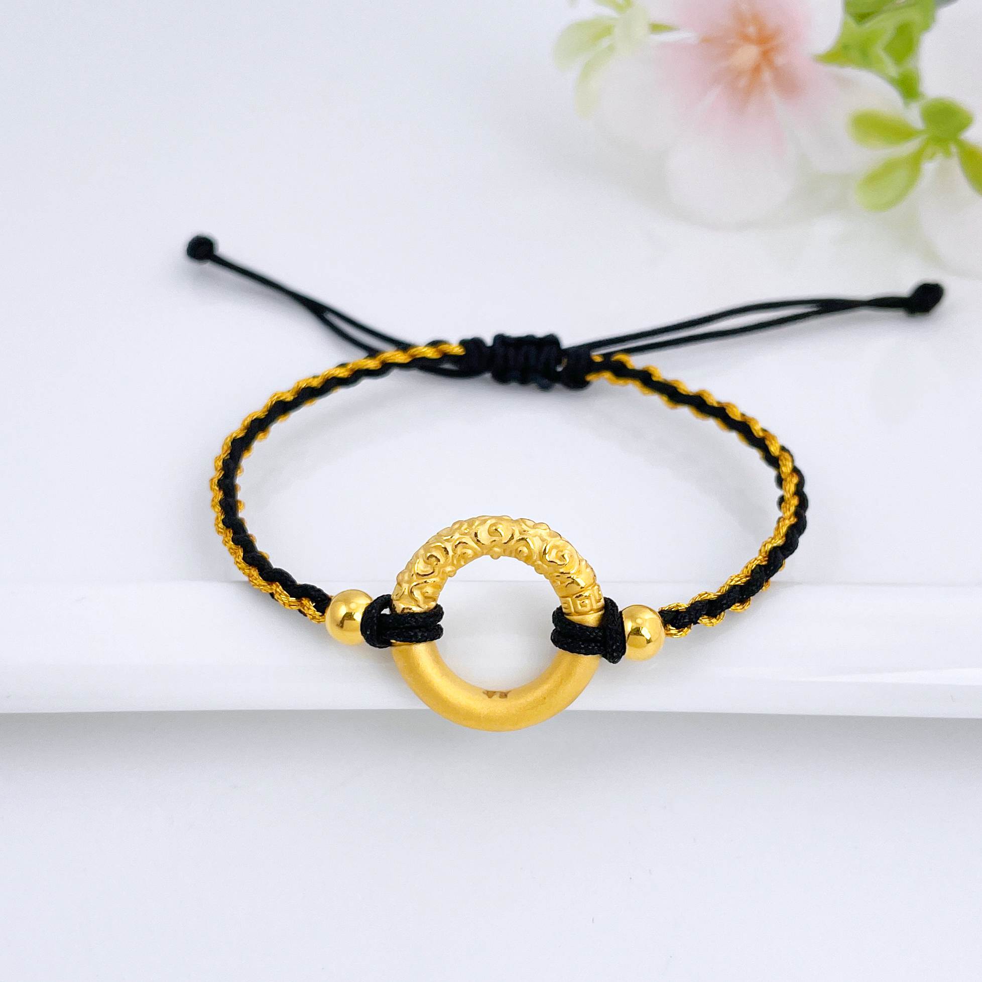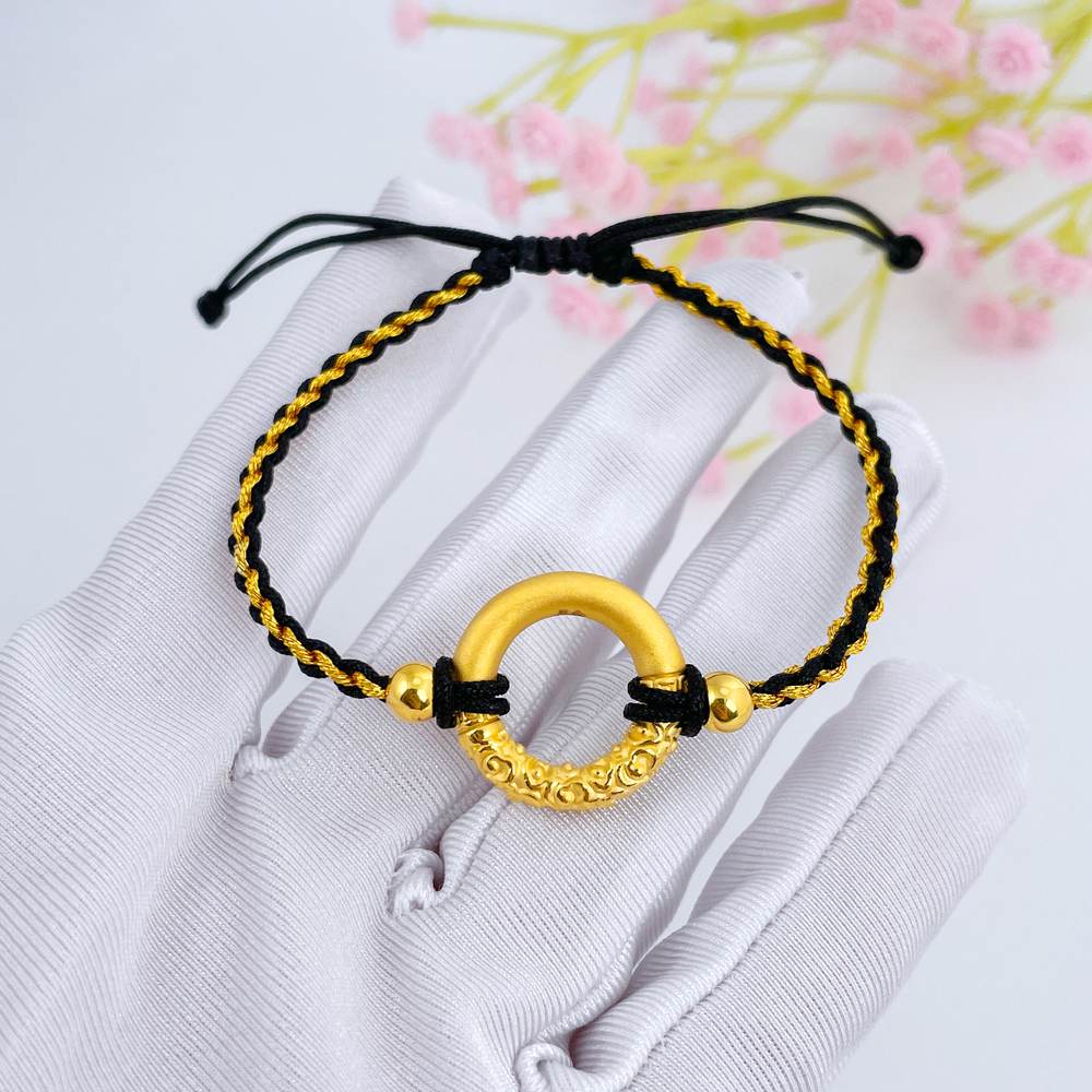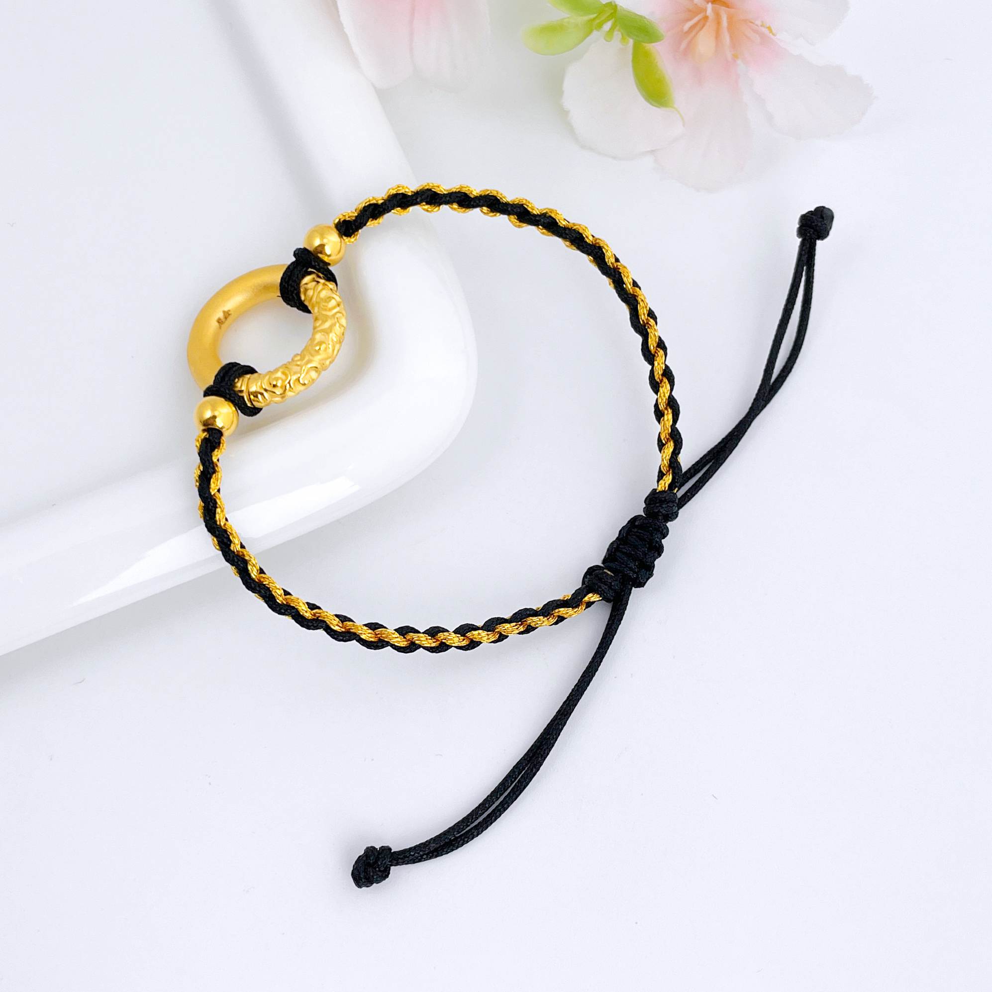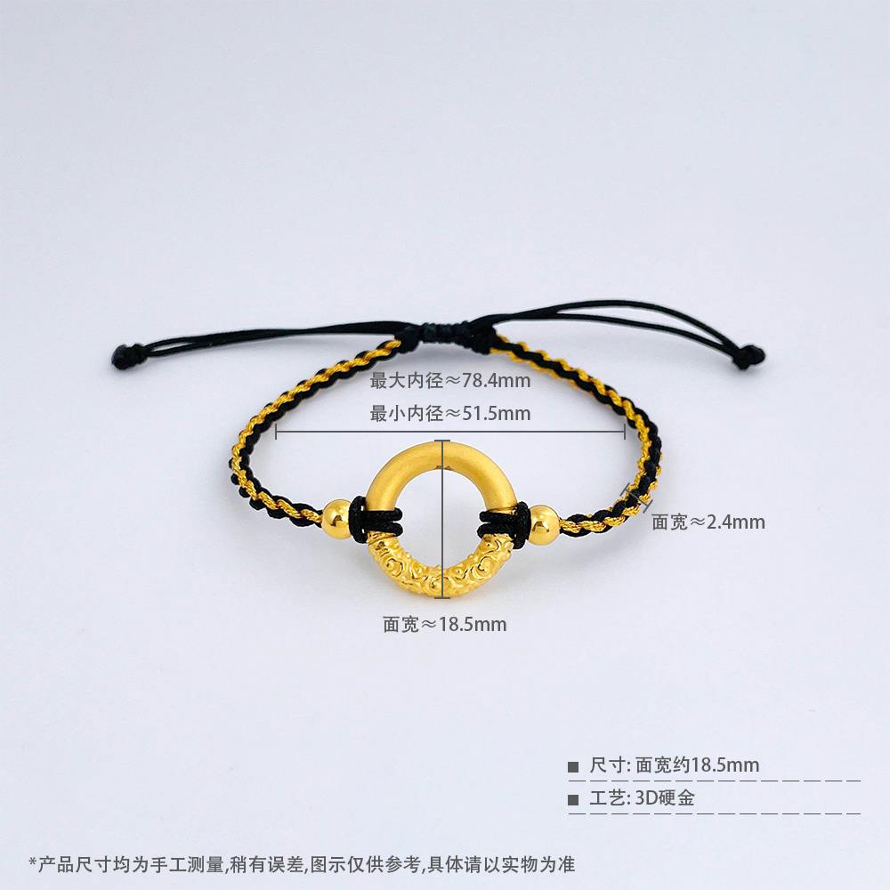 【限时7.5折】【定价黄金】足金 #热卖 #悟空 3D硬金祥云悟空金箍棒平安扣黑绳调节成品手串(AA3DSC00401)(特殊产品下单后不退款不退货不换货不补差价)