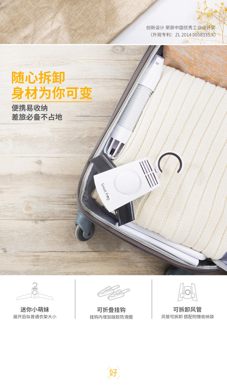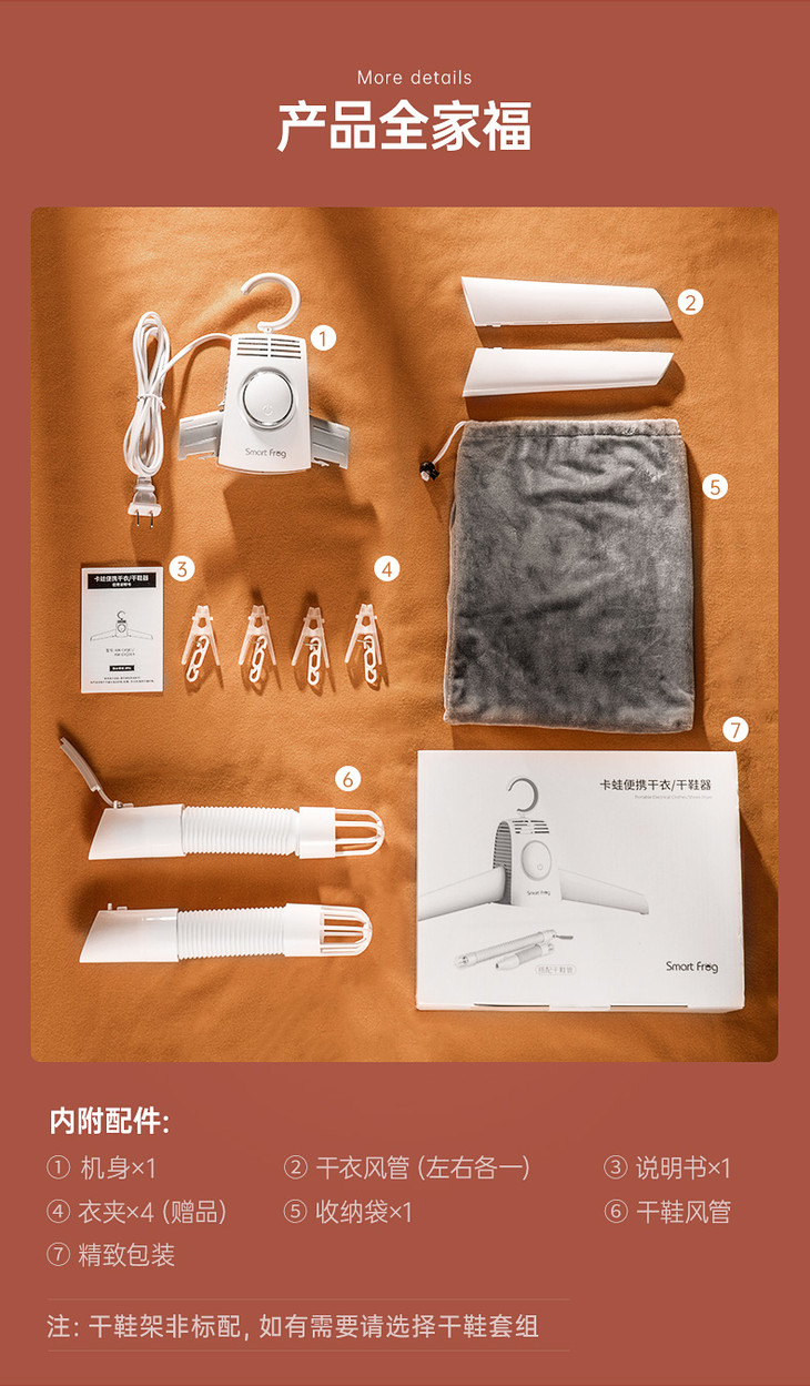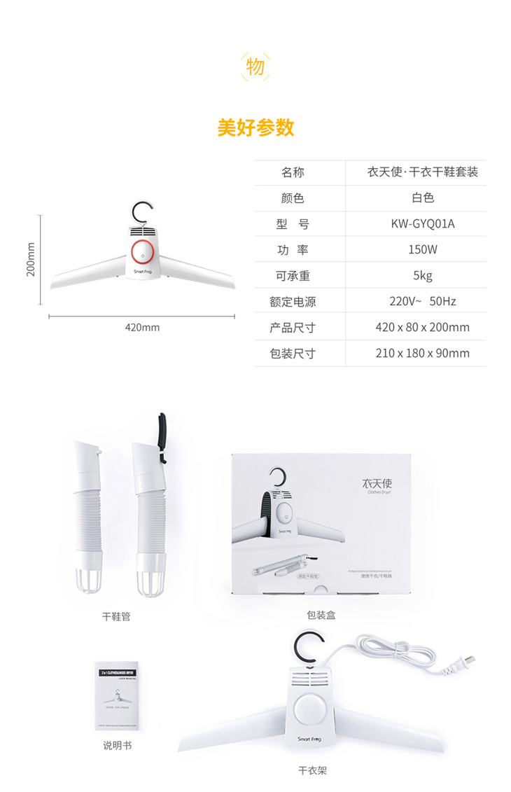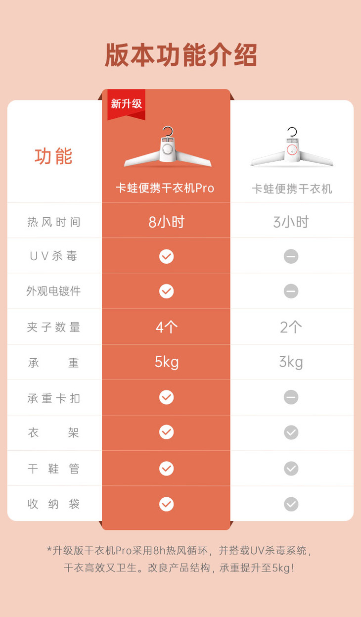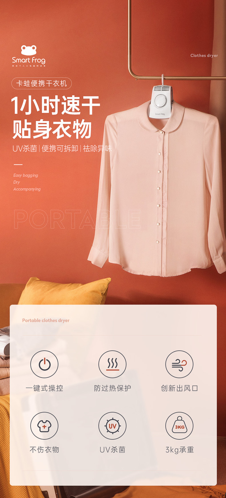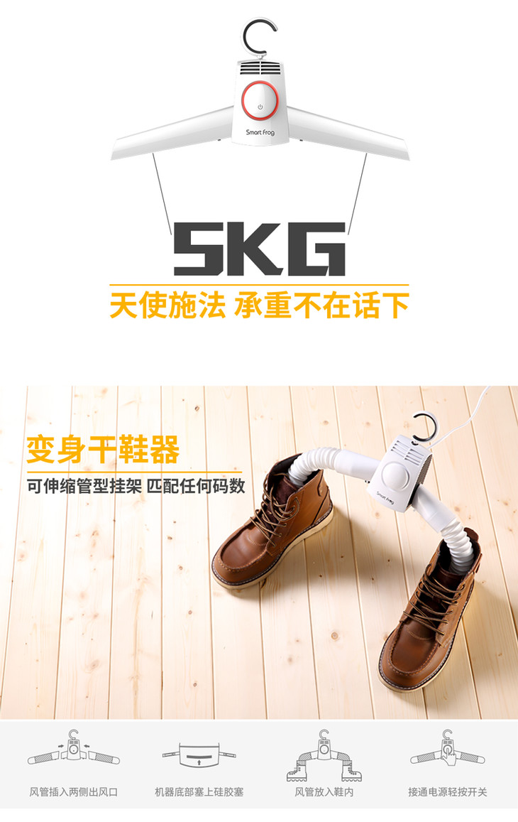 全新升级卡蛙UV便携式干衣干鞋器旅行家用迷你烘干衣架可折叠快速烘干干衣
