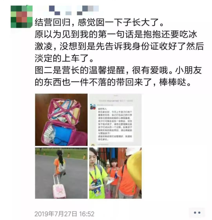 以下为2019年乐营体验营部分家长朋友圈