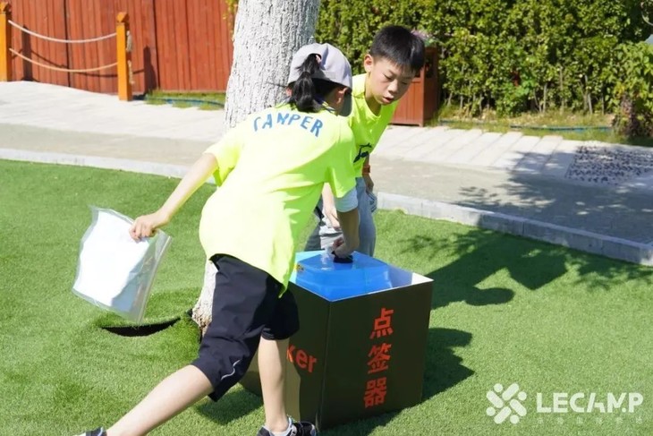 借助指南针和藏宝图的提示一路闯关打卡,从地图上找出最快最省力的线路到达终点,集齐全部点位就算成功。在寻宝的过程中不仅锻炼体能,更要求营员之间有团结协作、互相帮助的精神。