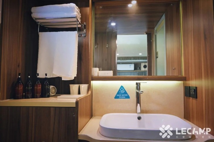 六十多辆澳式房车分布在营地的草坪与湖畔,开门即是景,轻松惬意地沉浸于大自然的怀抱中,享受着绿意盎然和波光粼粼;关门即是家,房车内部近20m²的面积却应有尽有,可容纳4名营员住宿,体验温馨又有趣的营地生活方式。