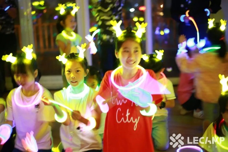 最炫的音乐、最酷的舞蹈加上特制的荧光道具,一起跟着音乐尽情地嗨起来——左边跟我一起画个龙,在你右边画一道彩虹~尽情享受美轮美奂、五光十色的光影之夜。这个夜晚,做营地全场最嗨的仔。