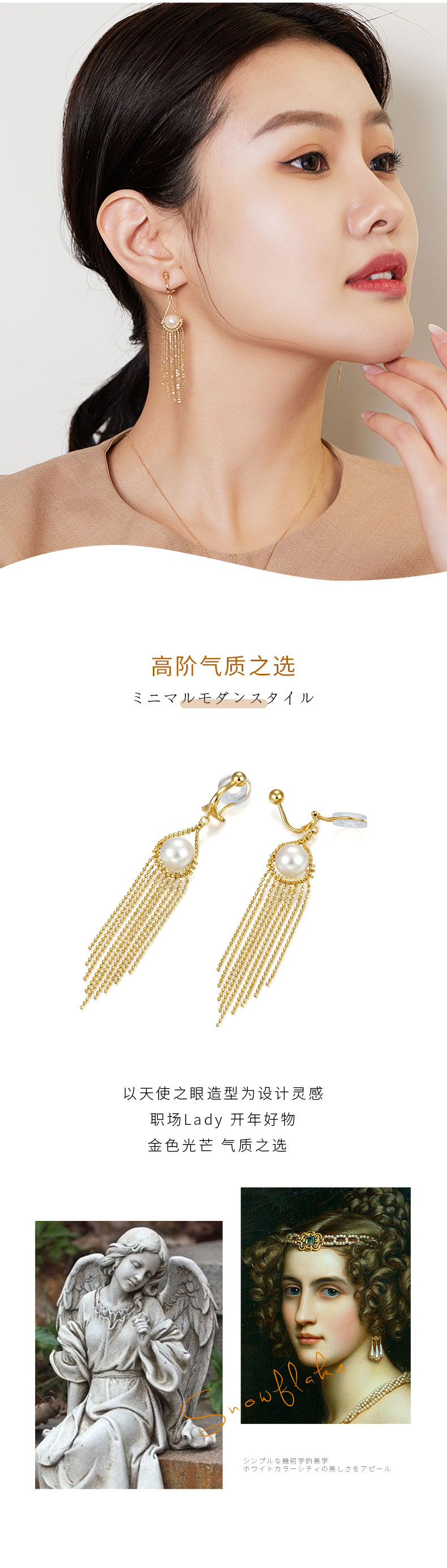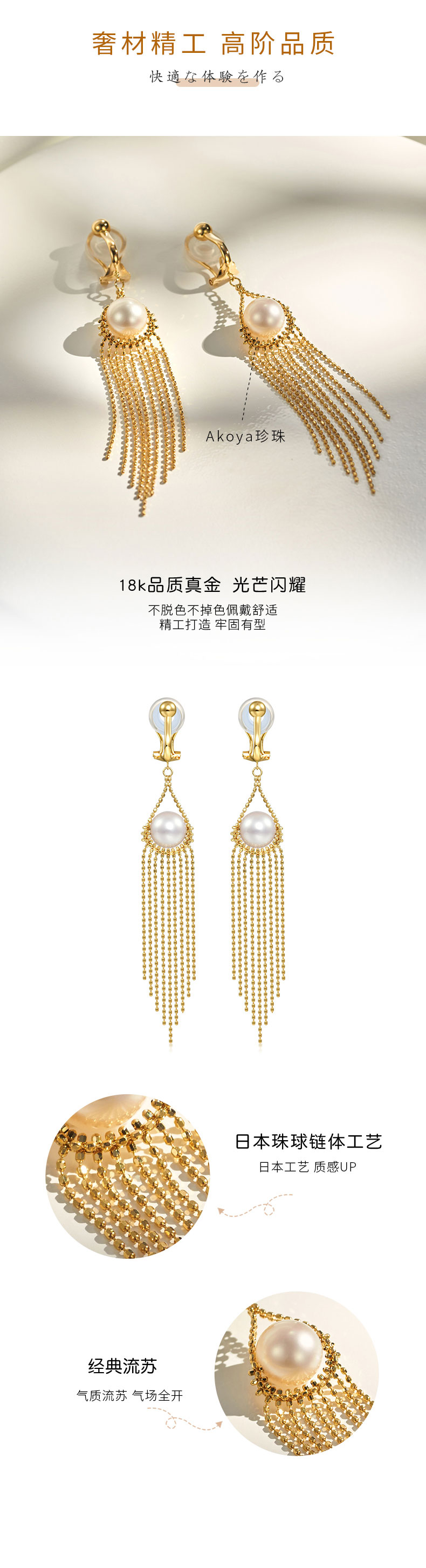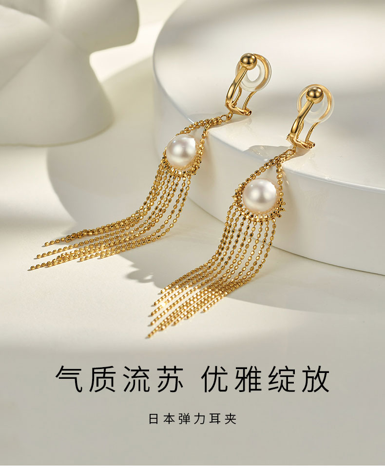 【挚友限定】悦甄 扉扬 18K金akoya珍珠流苏耳夹天使之眼造型