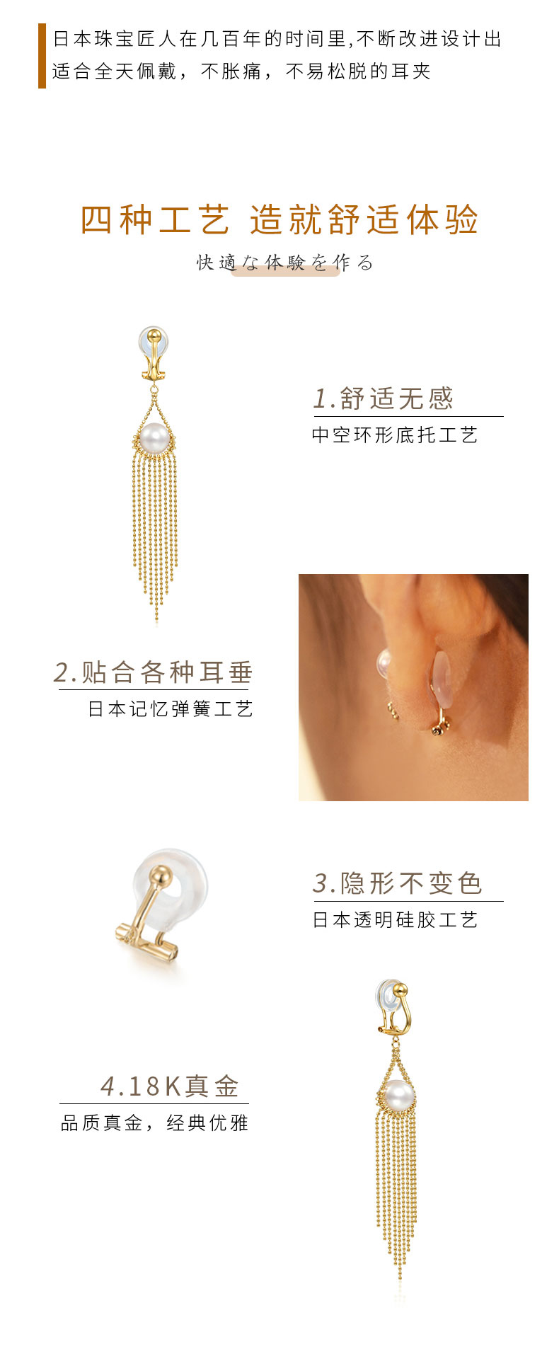 【天猫同款】18k金两戴款钻石珍珠耳夹 可颂