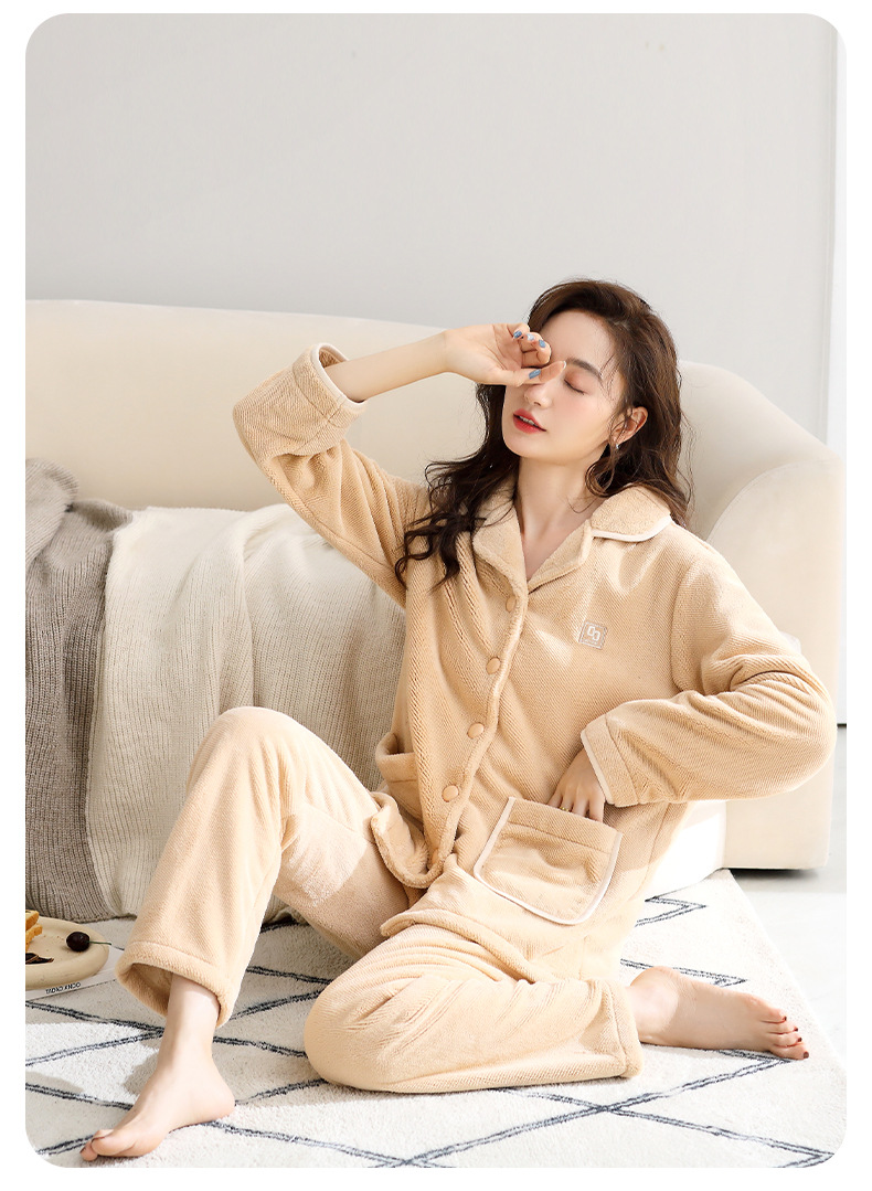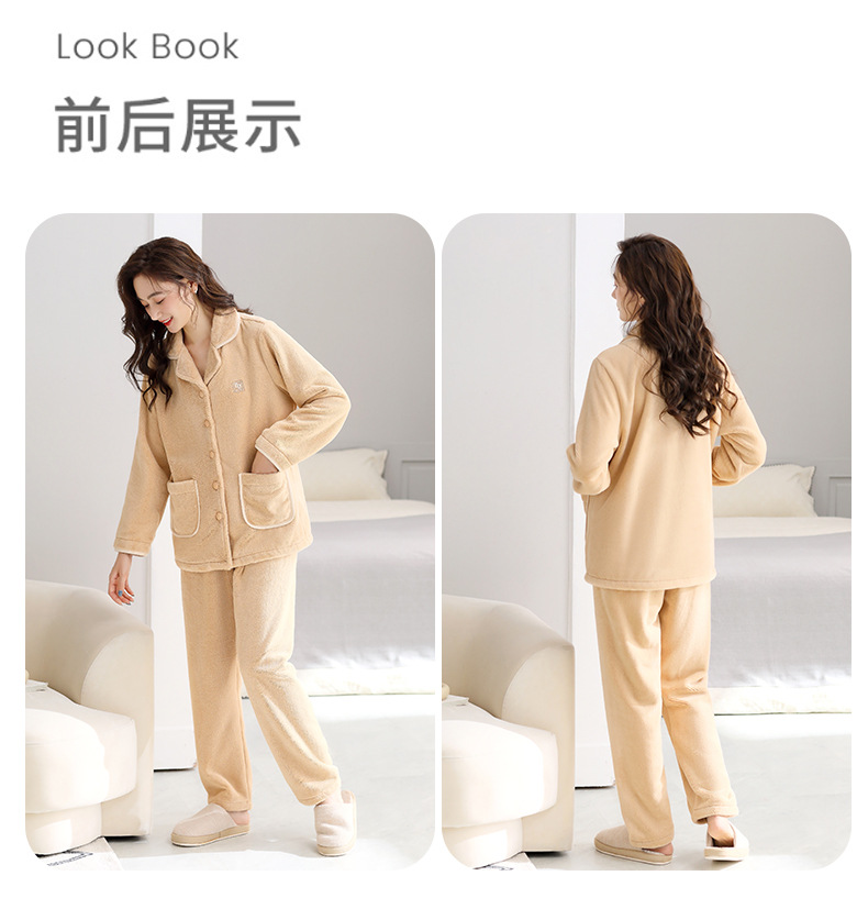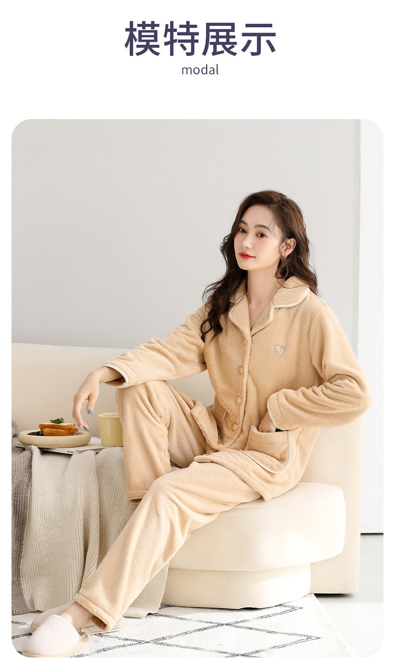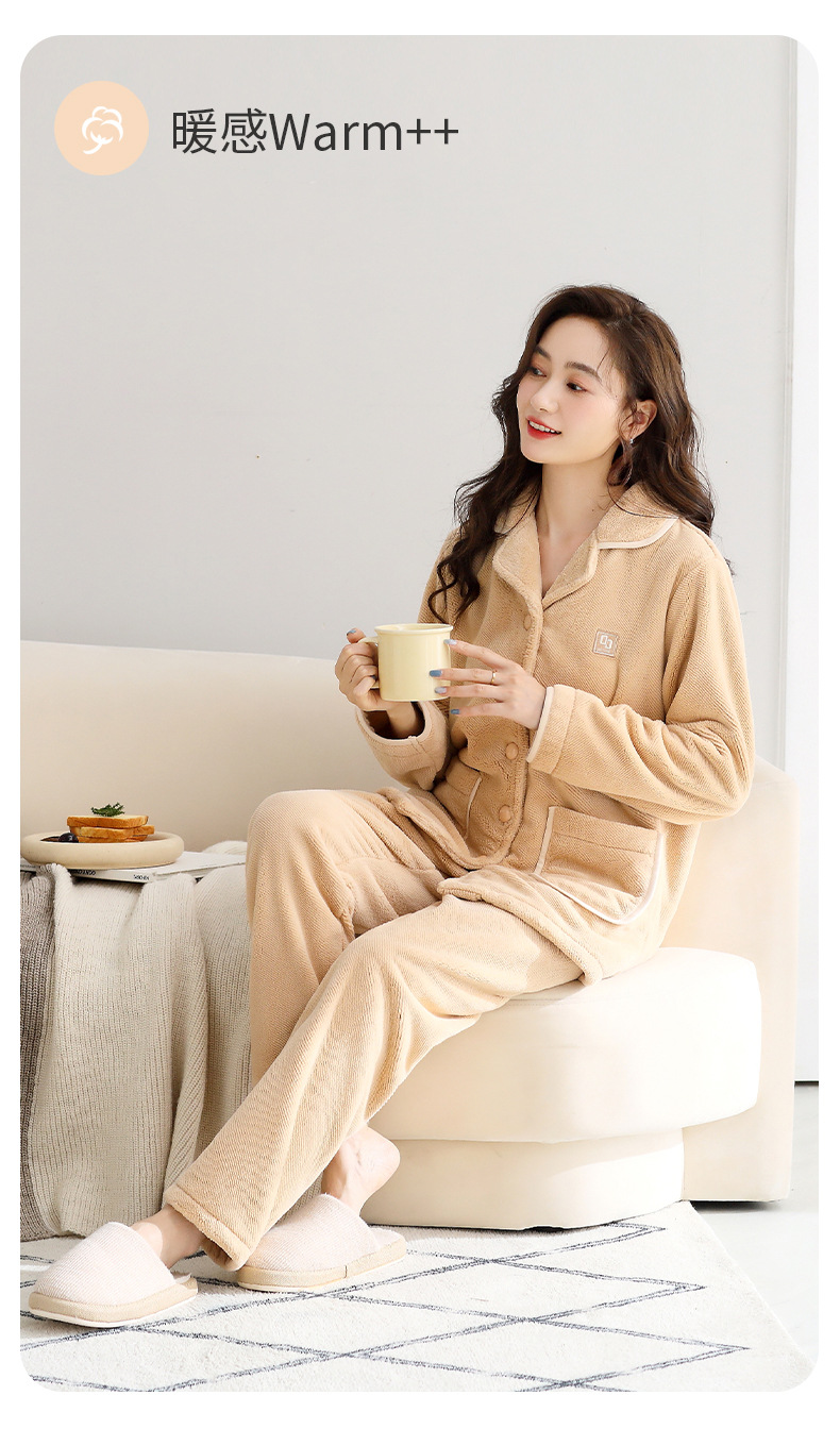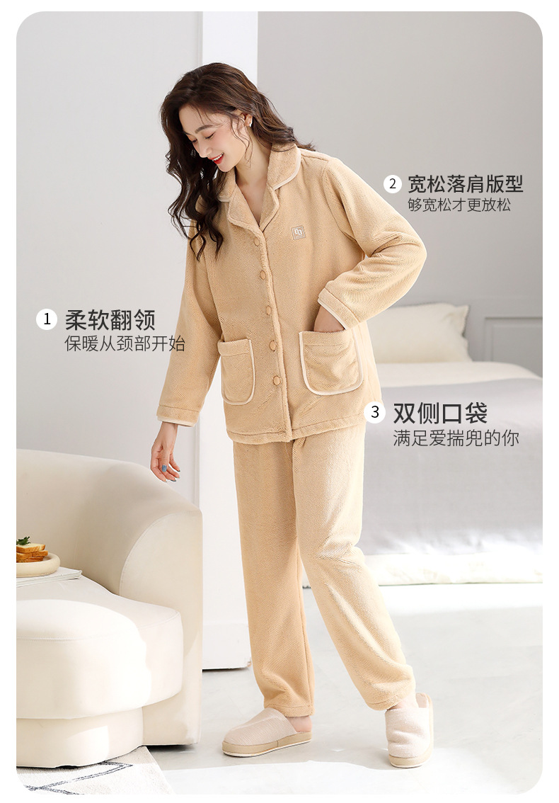 秋冬季【加厚加绒珊瑚绒睡衣】保暖法兰绒女式 大码家居服套装 五色可选