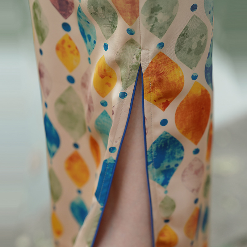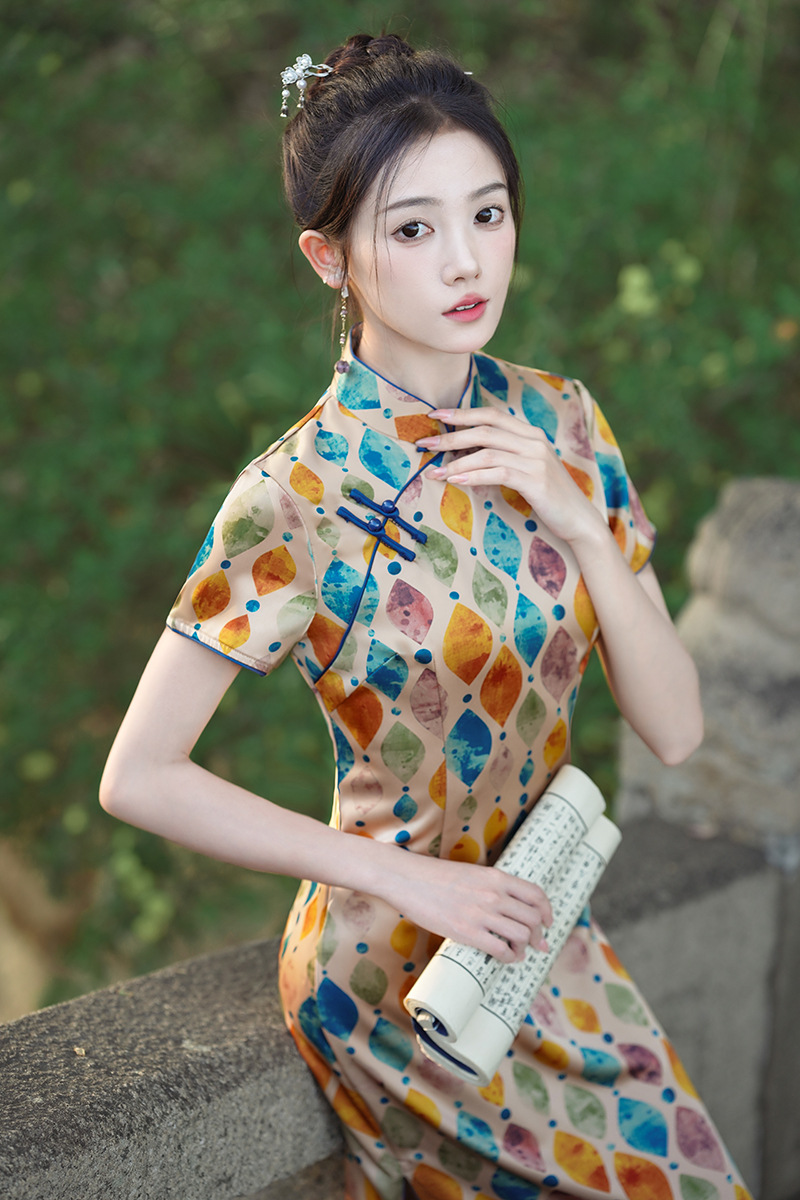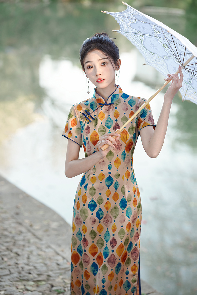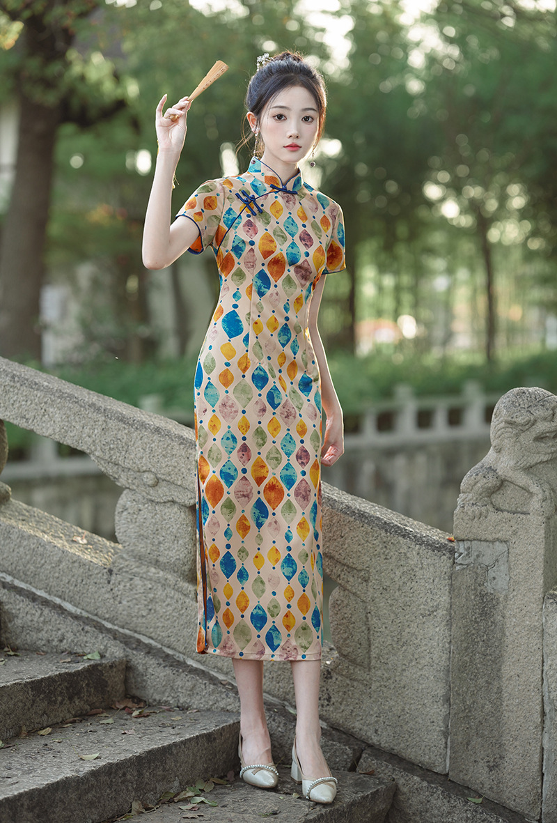 改良日常复古,新中式长款轻薄旗袍XL- 217