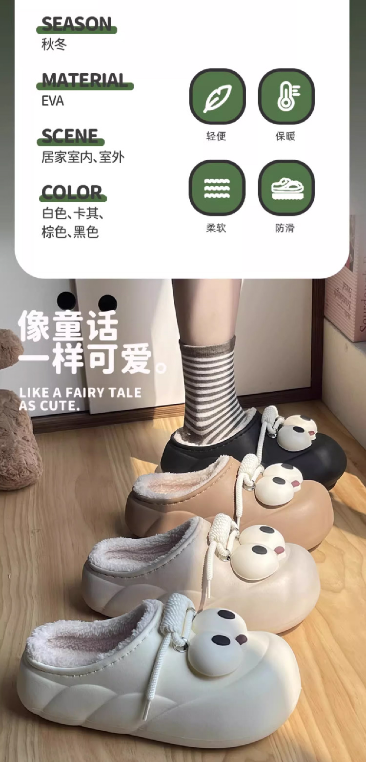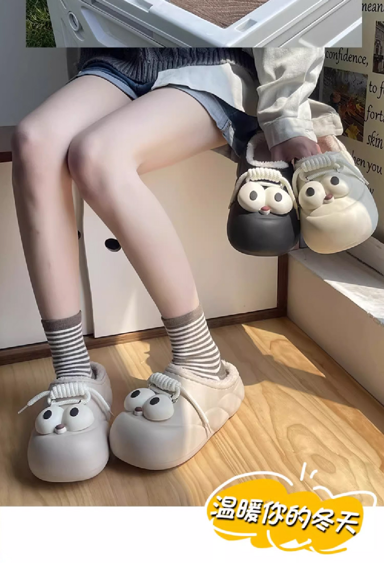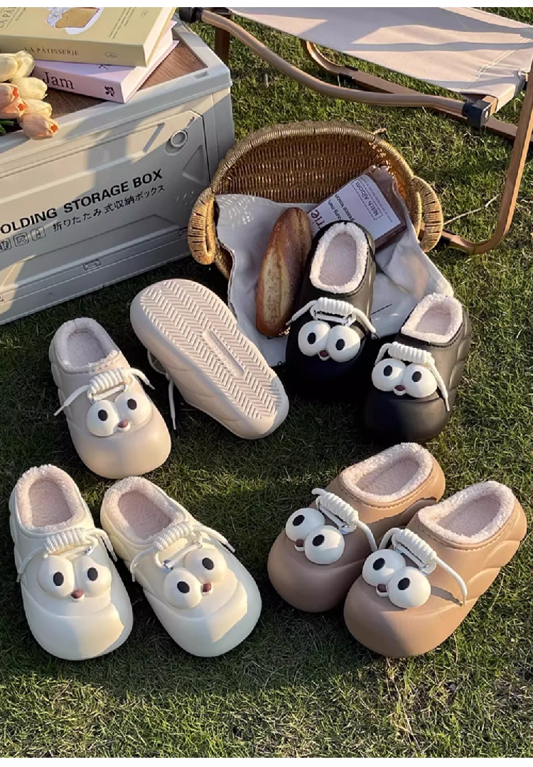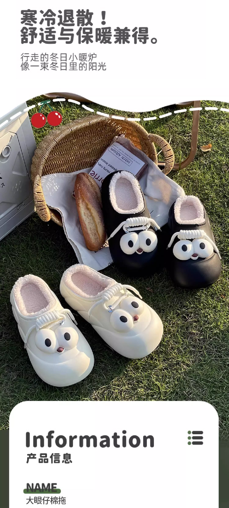 【成人保暖拖鞋】大眼睛秋冬厚底可爱加绒保暖棉拖 家居室内冬天拖鞋棉鞋可外穿