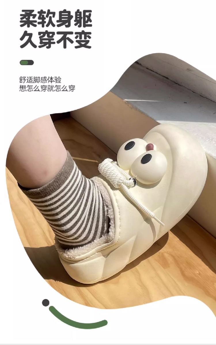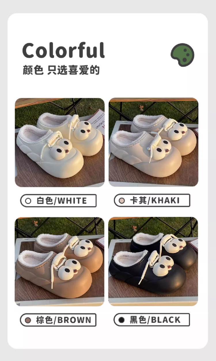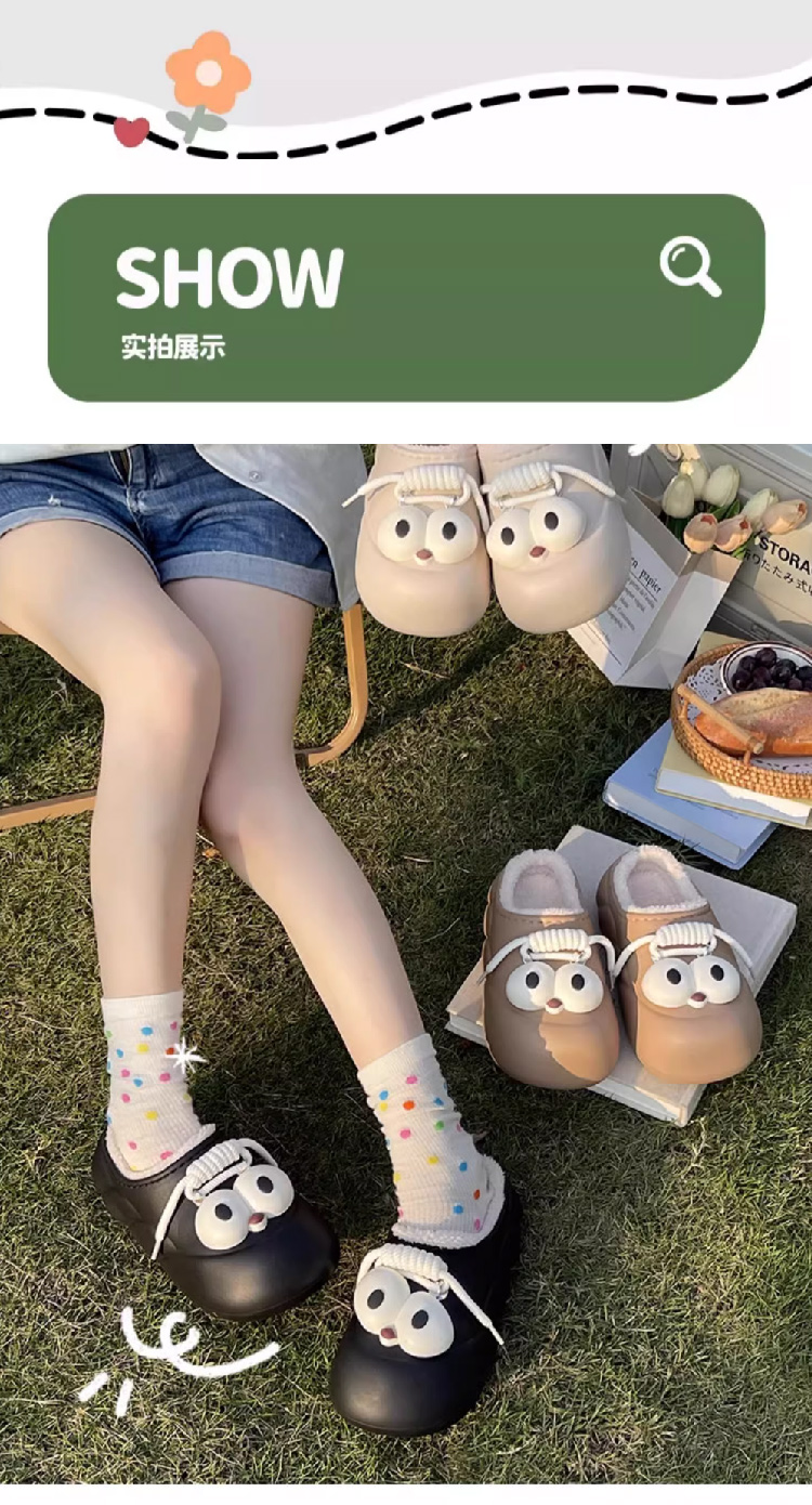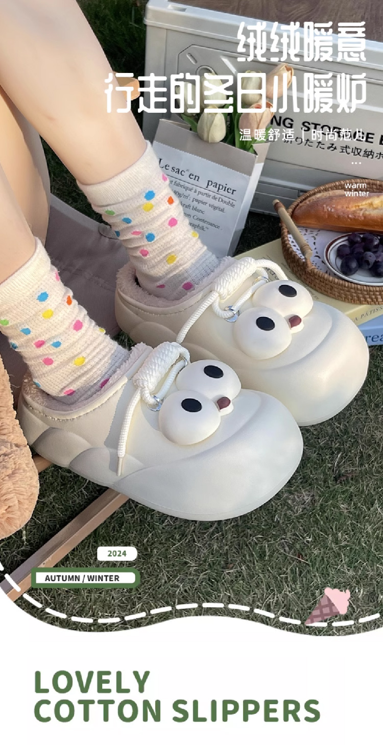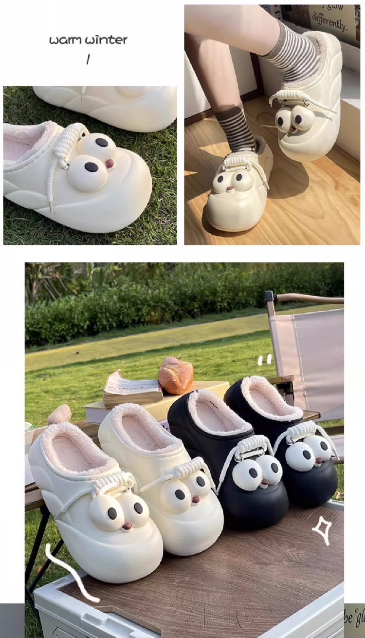 【成人保暖拖鞋】大眼睛秋冬厚底可爱加绒保暖棉拖 家居室内冬天拖鞋棉鞋可外穿