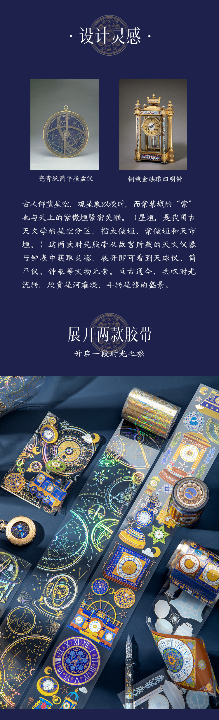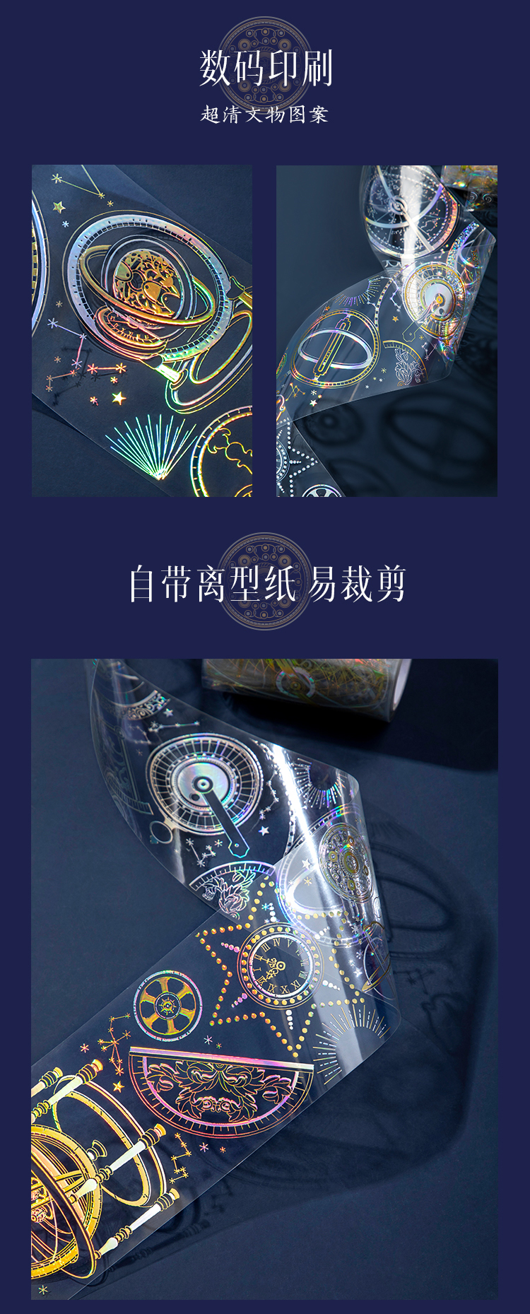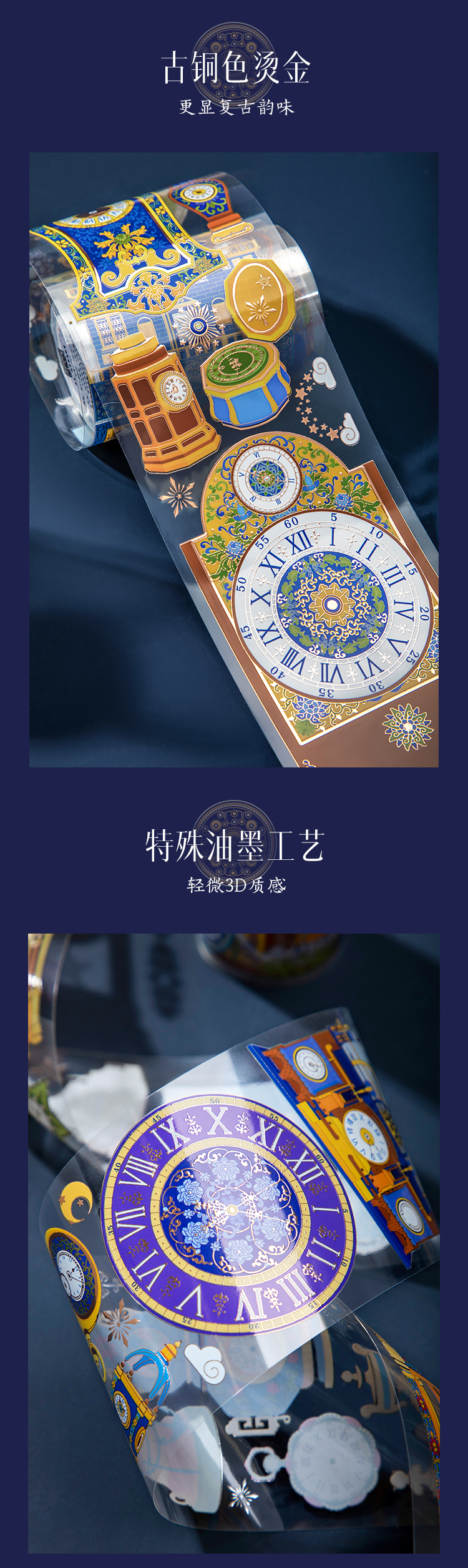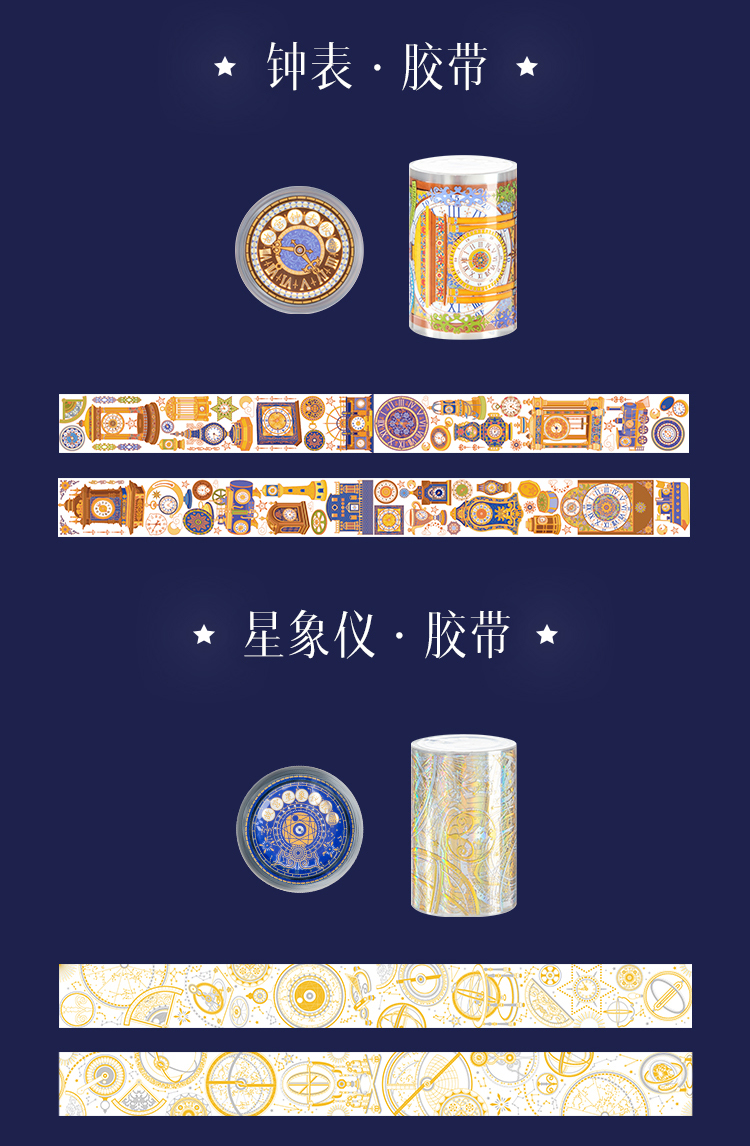【故宫胶带】故宫星空钟表烫金PET手帐胶带
