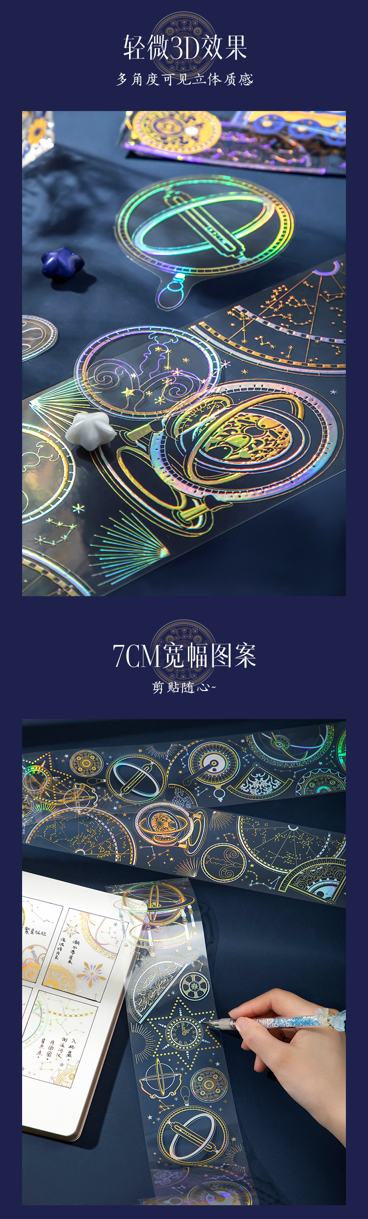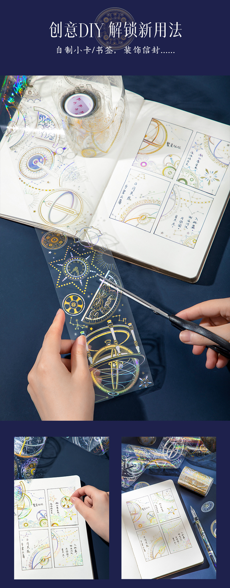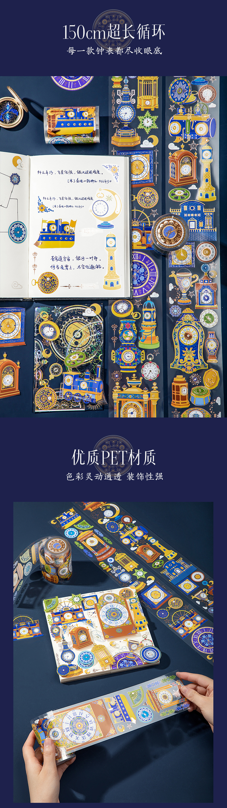 【故宫胶带】故宫星空钟表烫金PET手帐胶带
