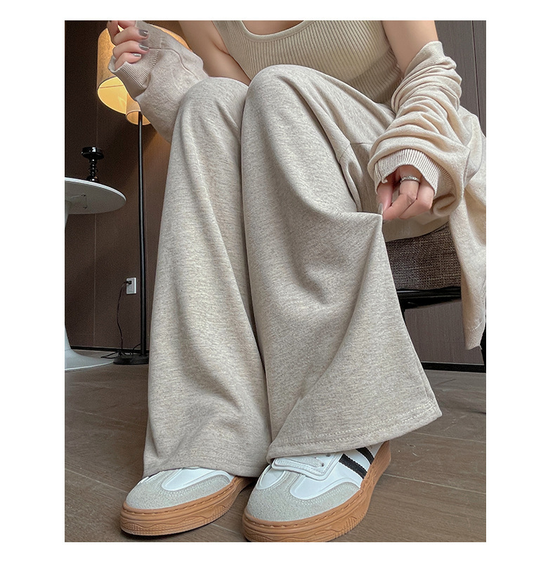 【个性时髦!柔软舒适】时尚减龄,糯米裤加绒阔腿裤子女秋冬季新款高腰宽松显瘦休闲裤慵懒风拖地裤。rb