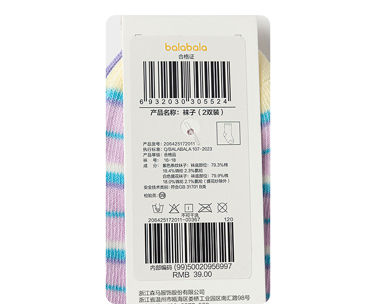 巴拉巴拉宝宝袜子冬季中筒袜婴幼儿萌趣袜提花两双装