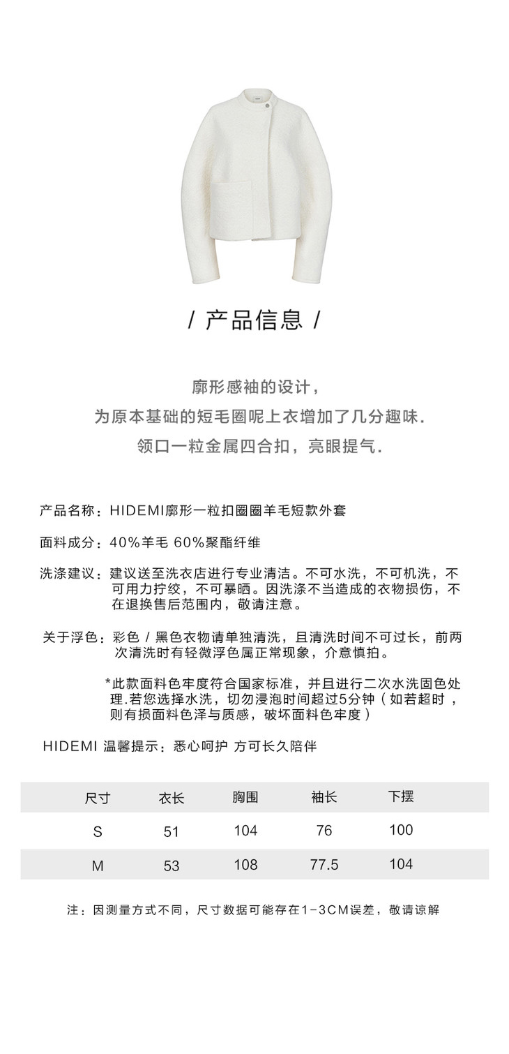 HIDEMI廓形一粒扣圈圈羊毛短款大衣/外套