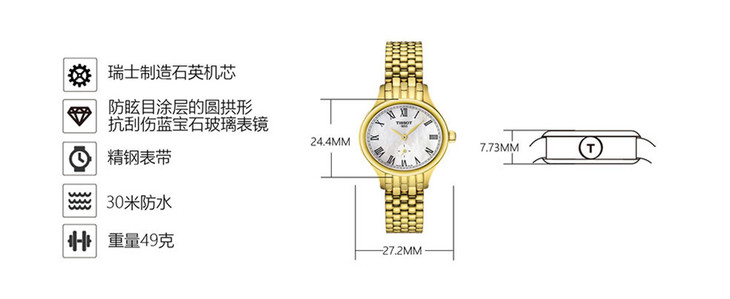 | 机芯 | 石英机芯 ETA 980.153 | 表径 | 27.2 *24.4 mm |