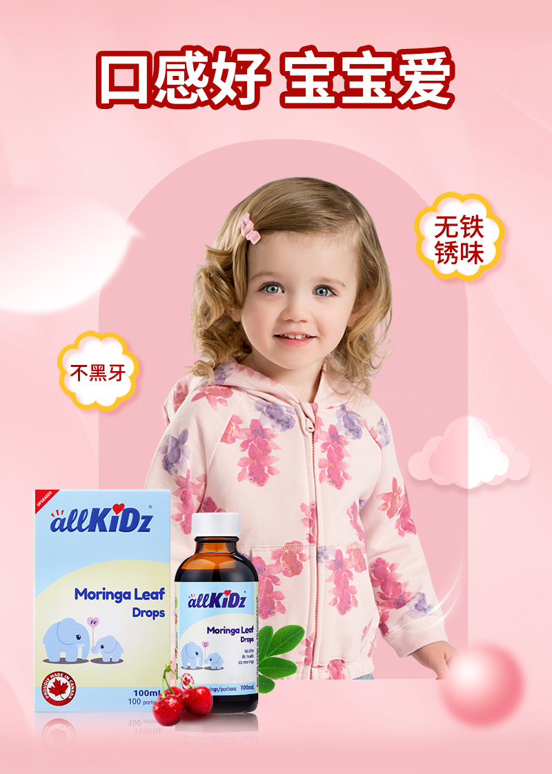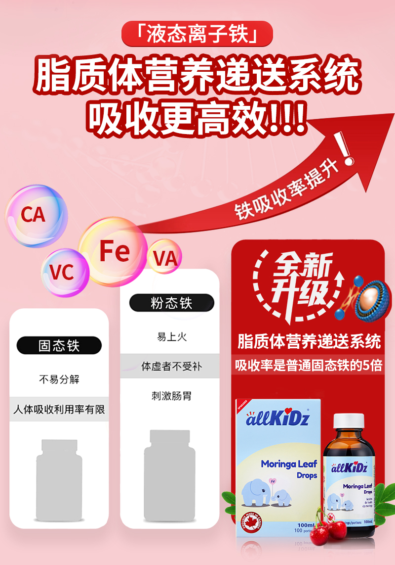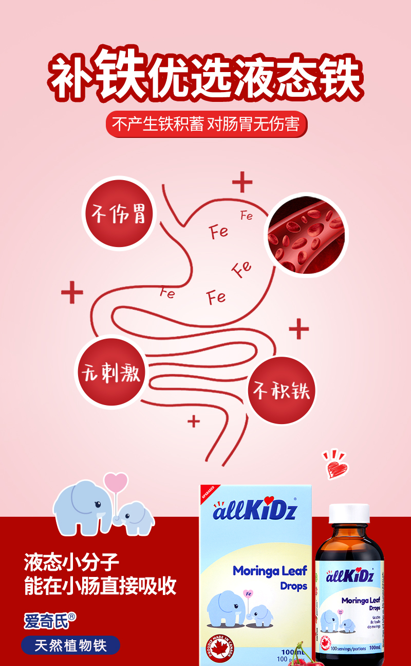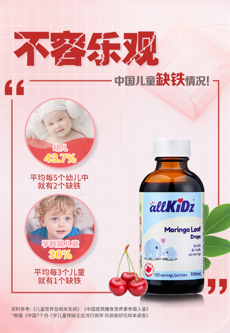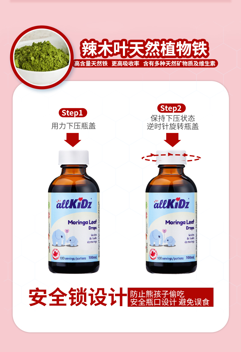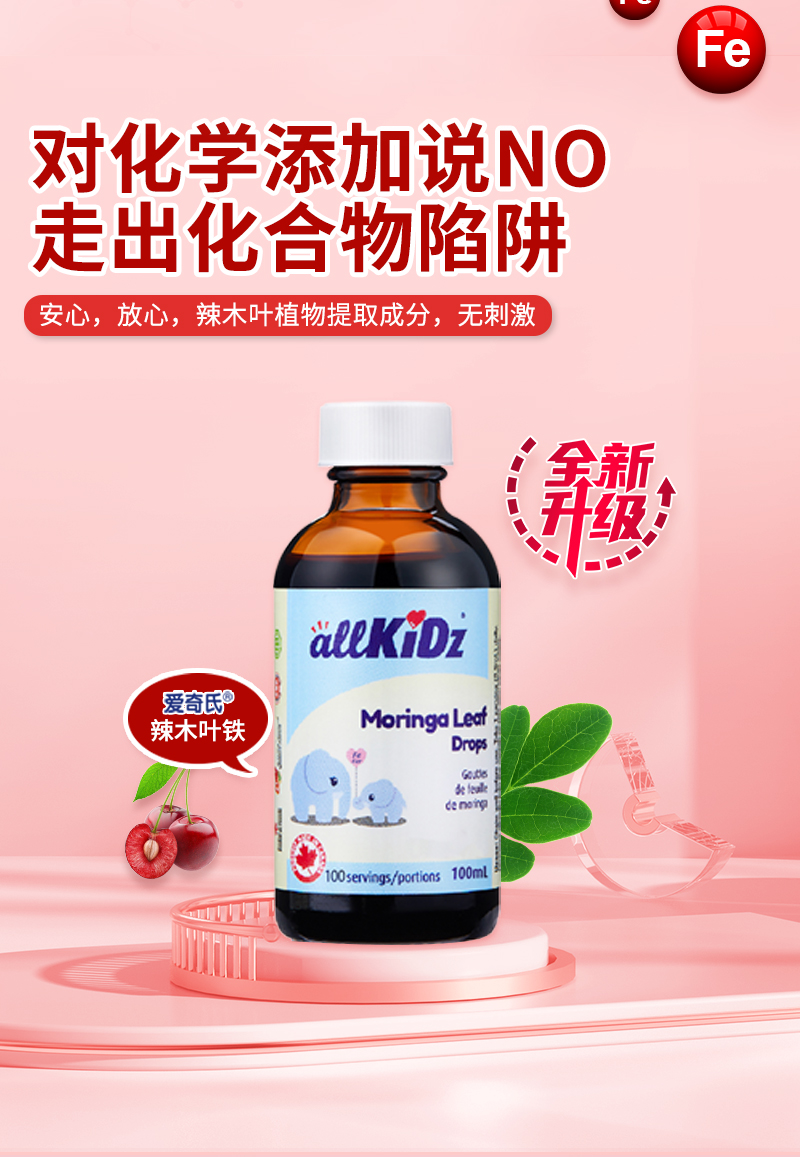 ² 清仓99元3瓶【加拿大原装进口爱奇氏儿童辣木叶滴液100ml &DHA】多维易吸收铁剂 多重植物元素 地贫不可吃26年3月到期 HM02-CRMM-AQS【爱奇氏】