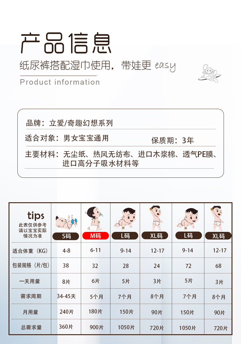 不在上架——⁷ 【立爱宝宝纸尿裤/拉拉裤】弱酸面层 减少红PP 透气不透水 高弹力腰围 柔软亲肤 ZX07-CRMM-HC