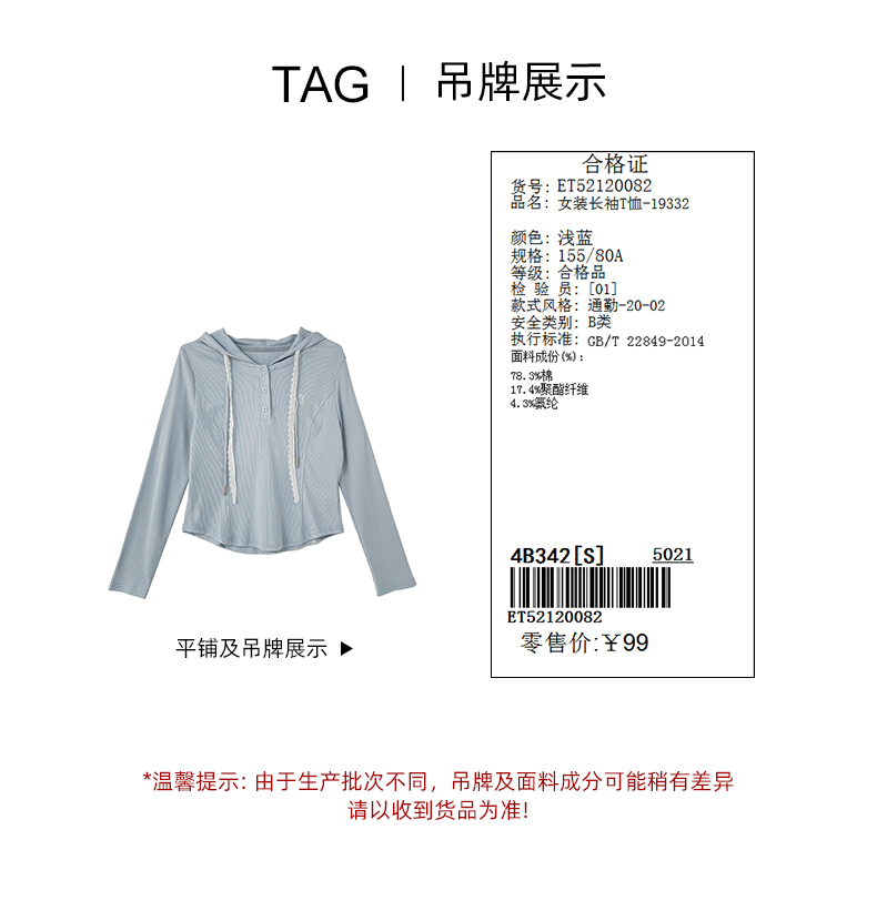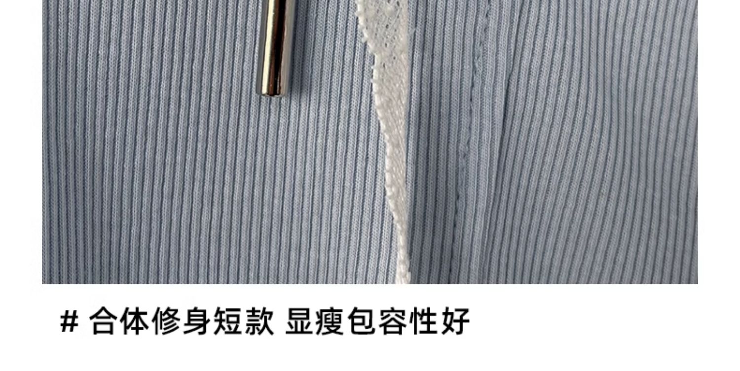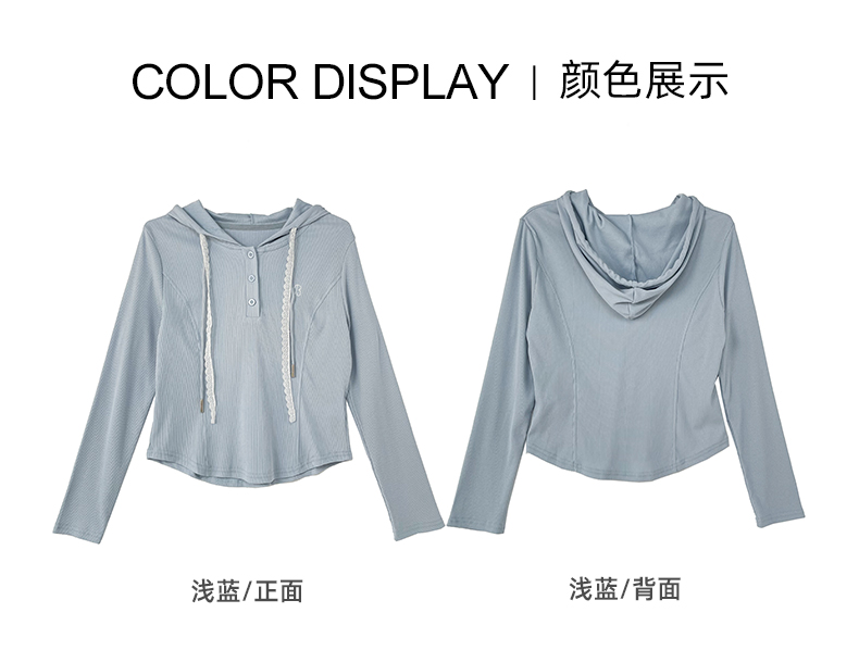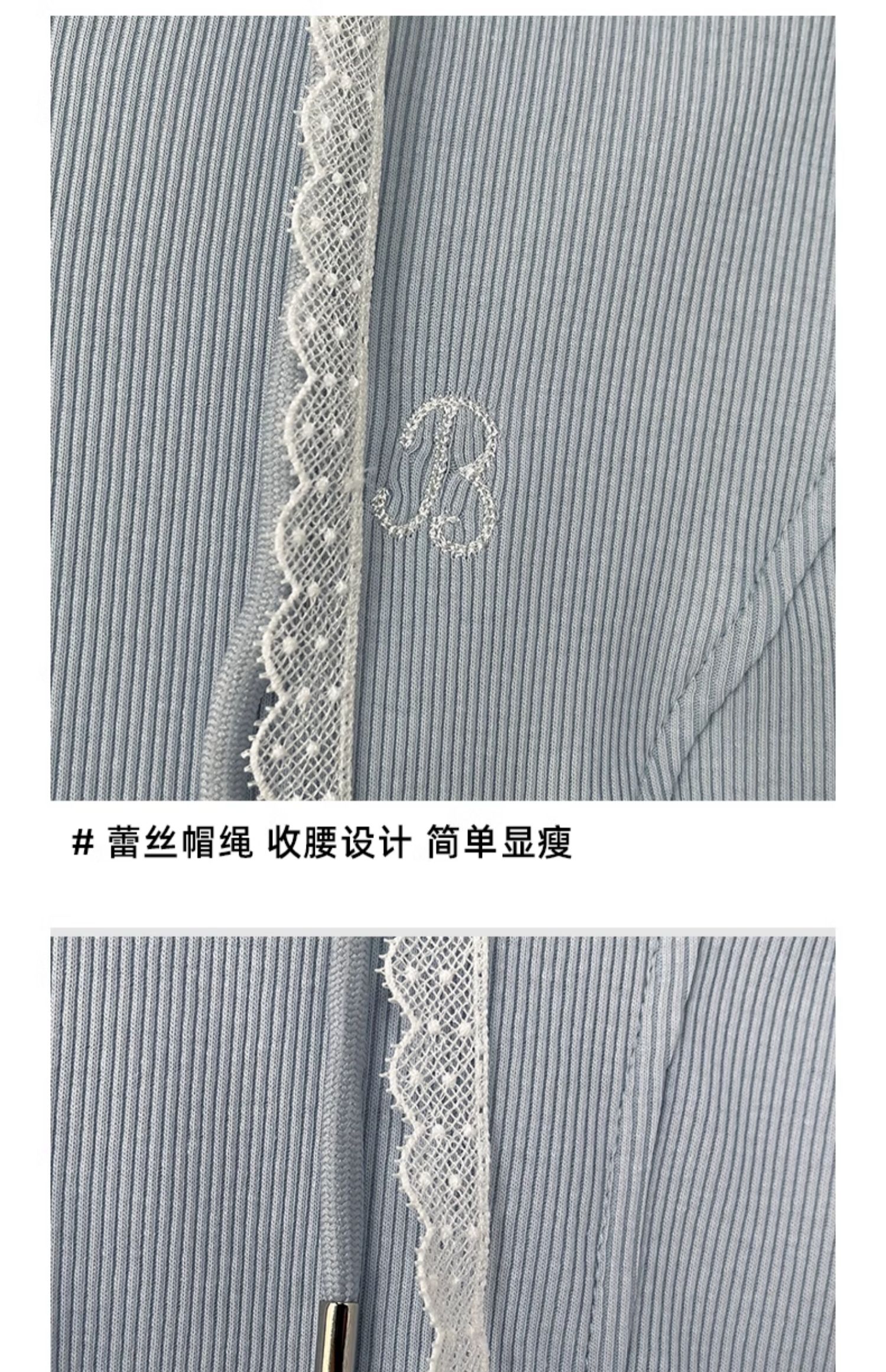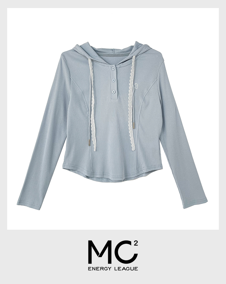 女装连帽钉扣款蕾丝帽绳T恤-19332T5212008