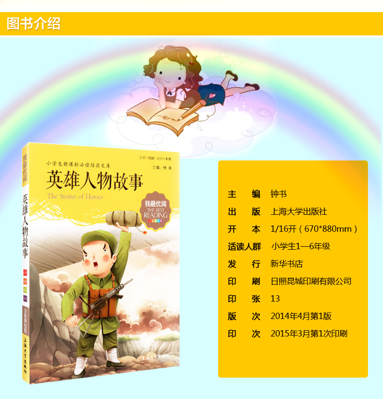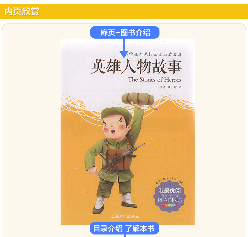 1-3年级适用 注音美绘版-英雄人物故事 钟书正版少儿读物我优阅系列拼音彩图版英雄人物故事 儿童文学课外读物小学生作文阅读写作