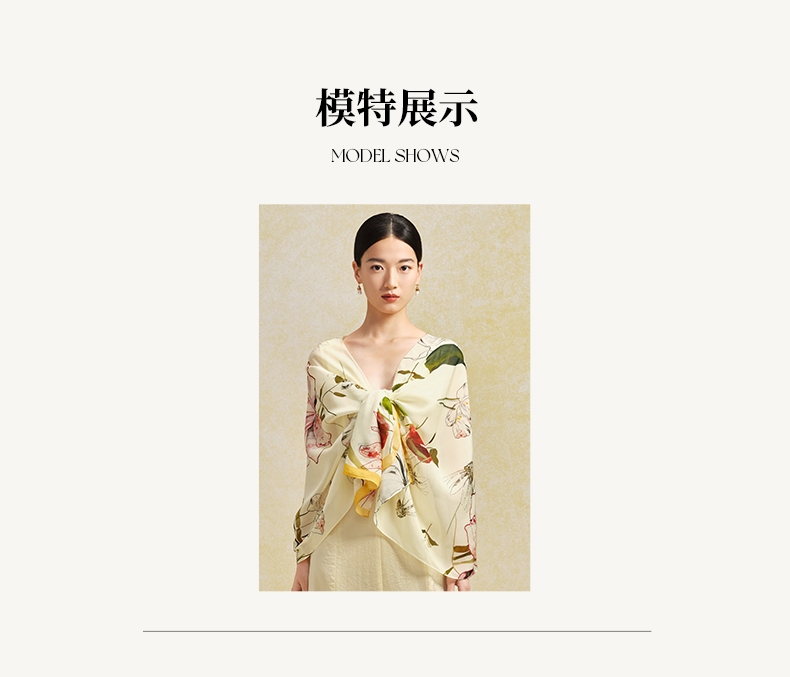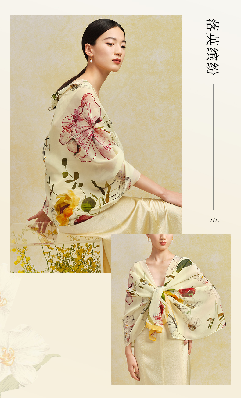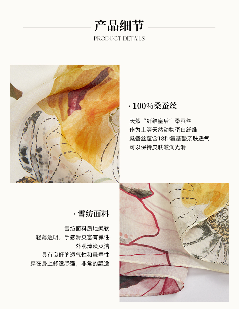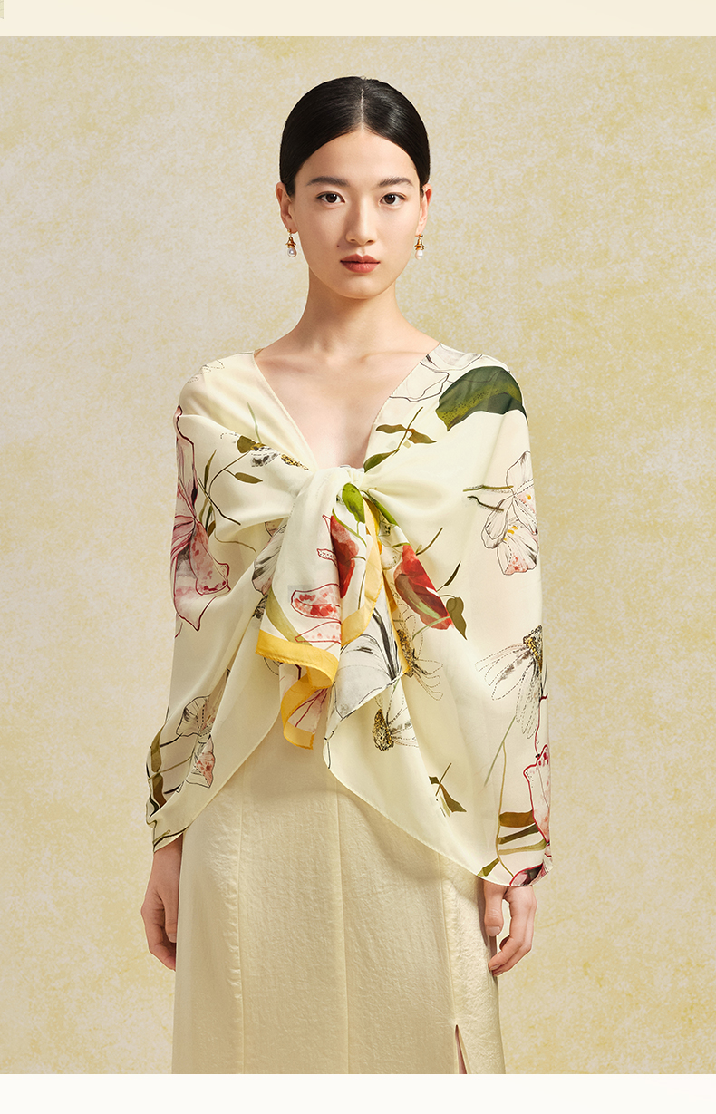 万事利“玉兰赋”63厘米双面印花真丝中方巾