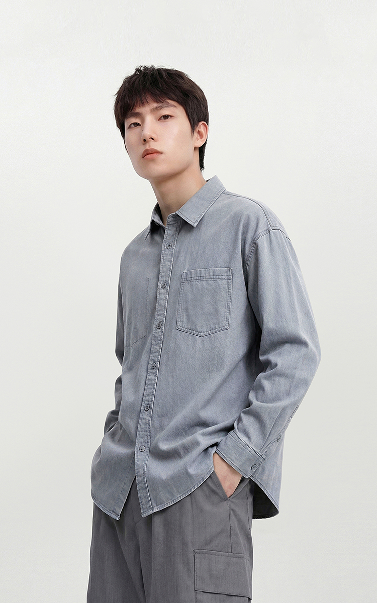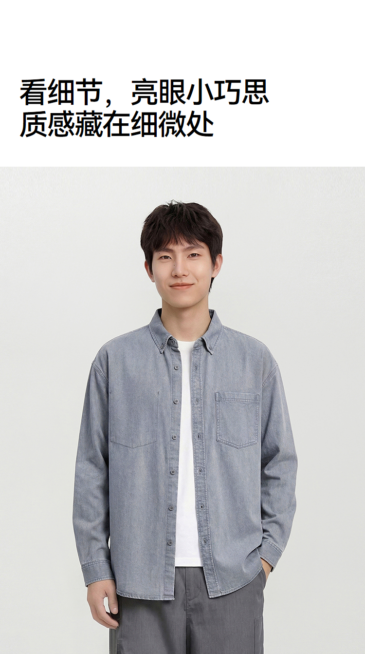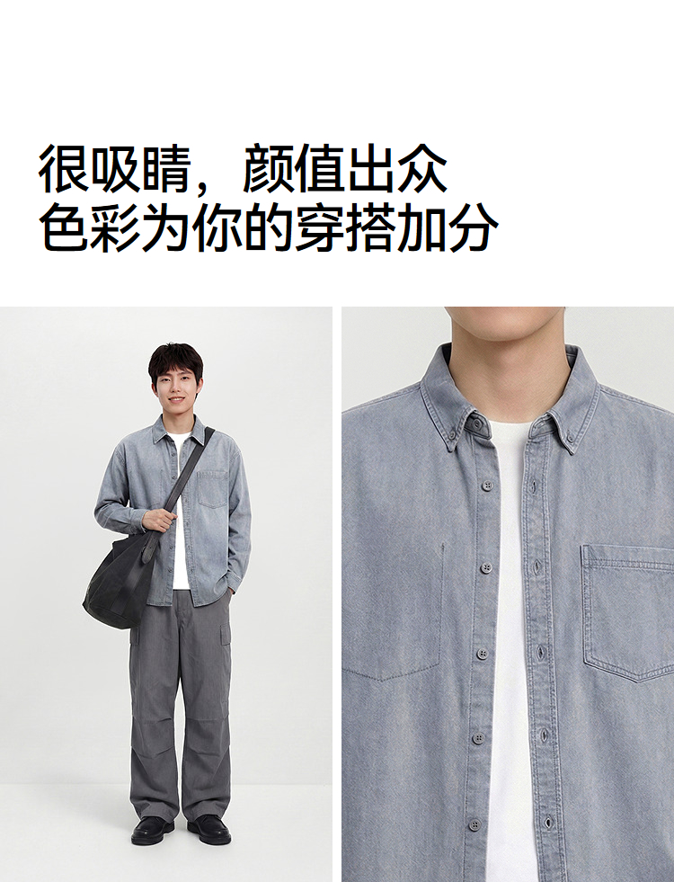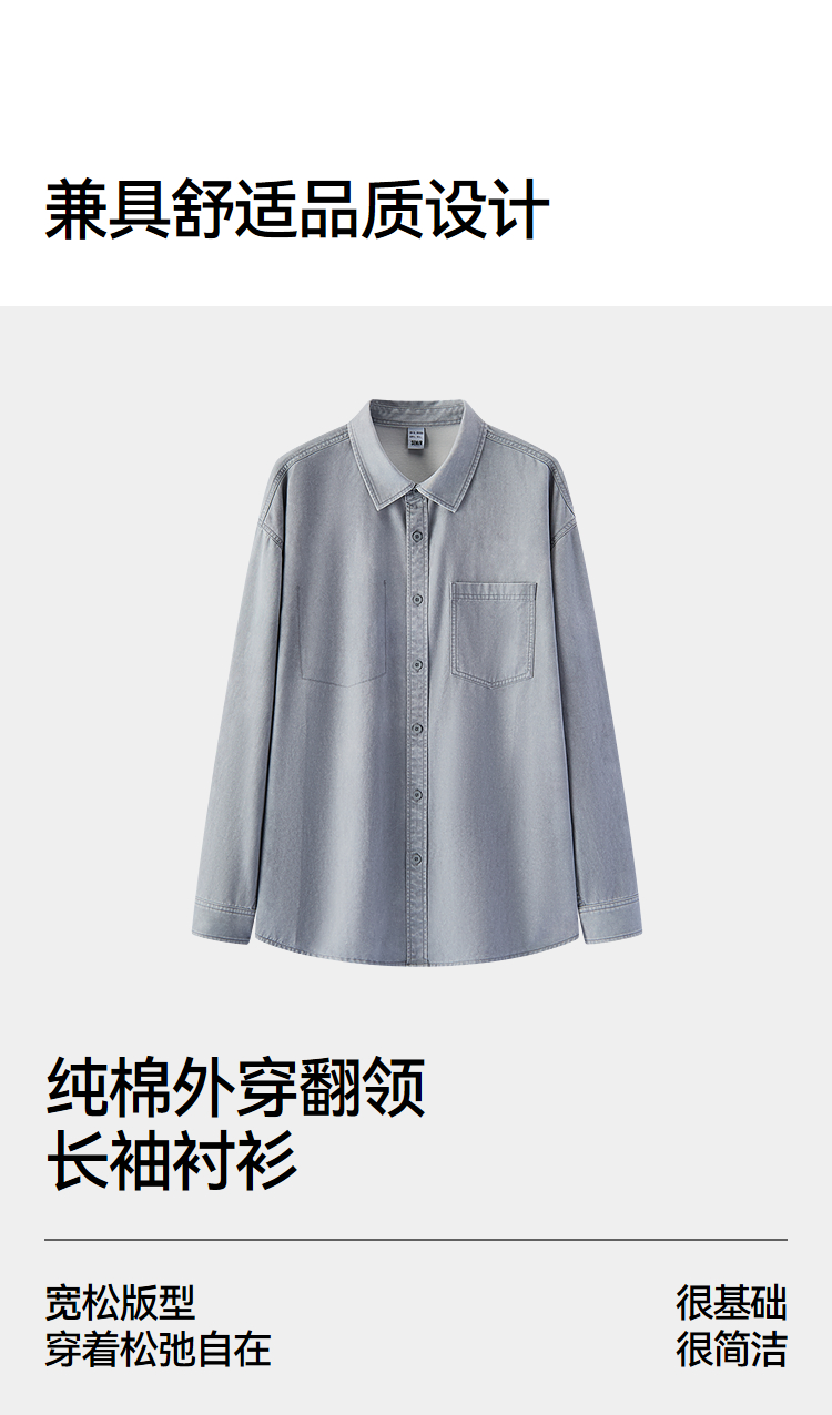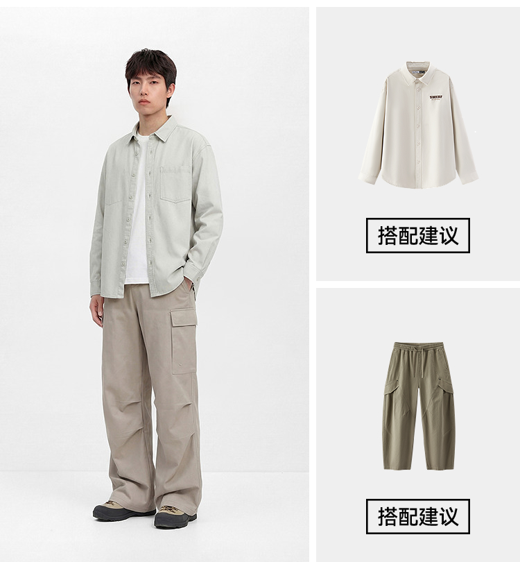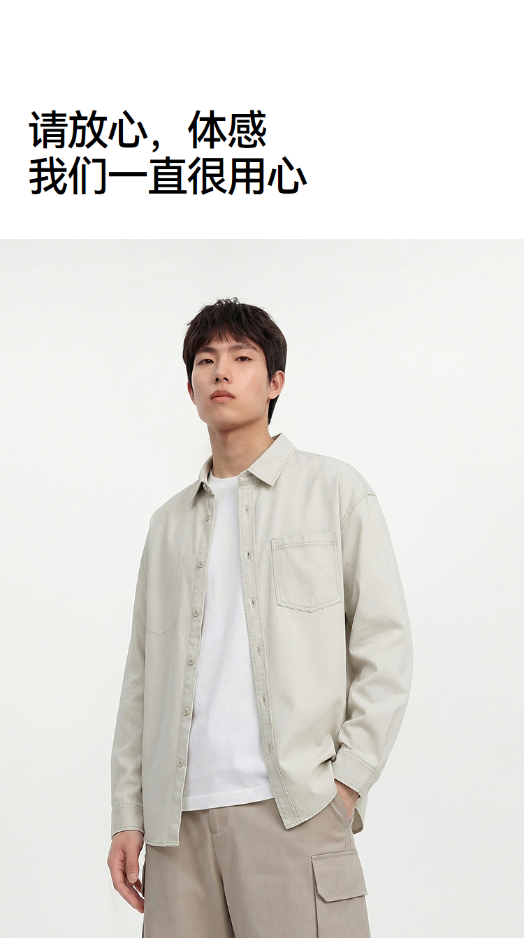 商场同款|森马长袖衬衫男春季纯棉斜纹外套2026新款宽松翻领上衣