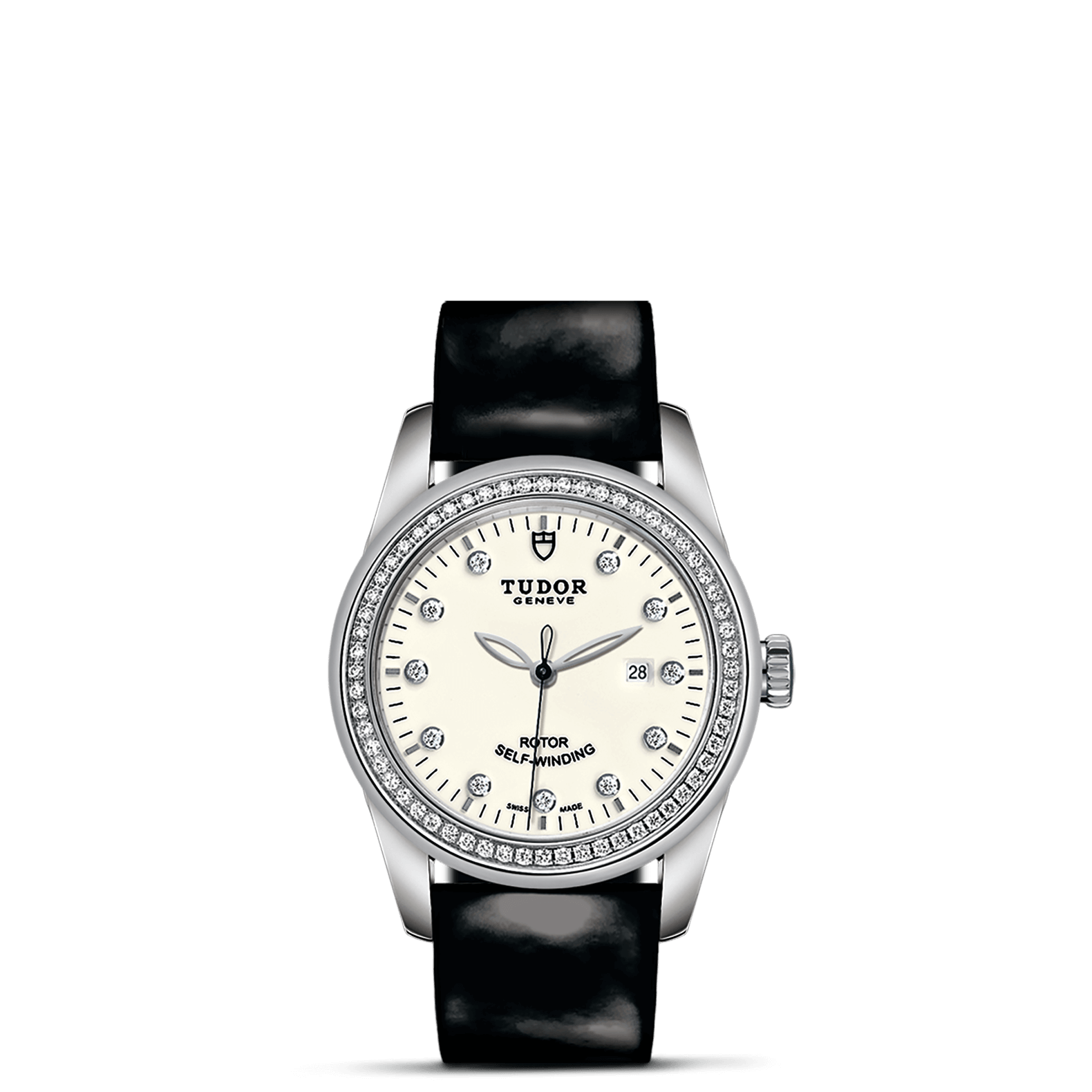黑色漆皮表带,配摺扣