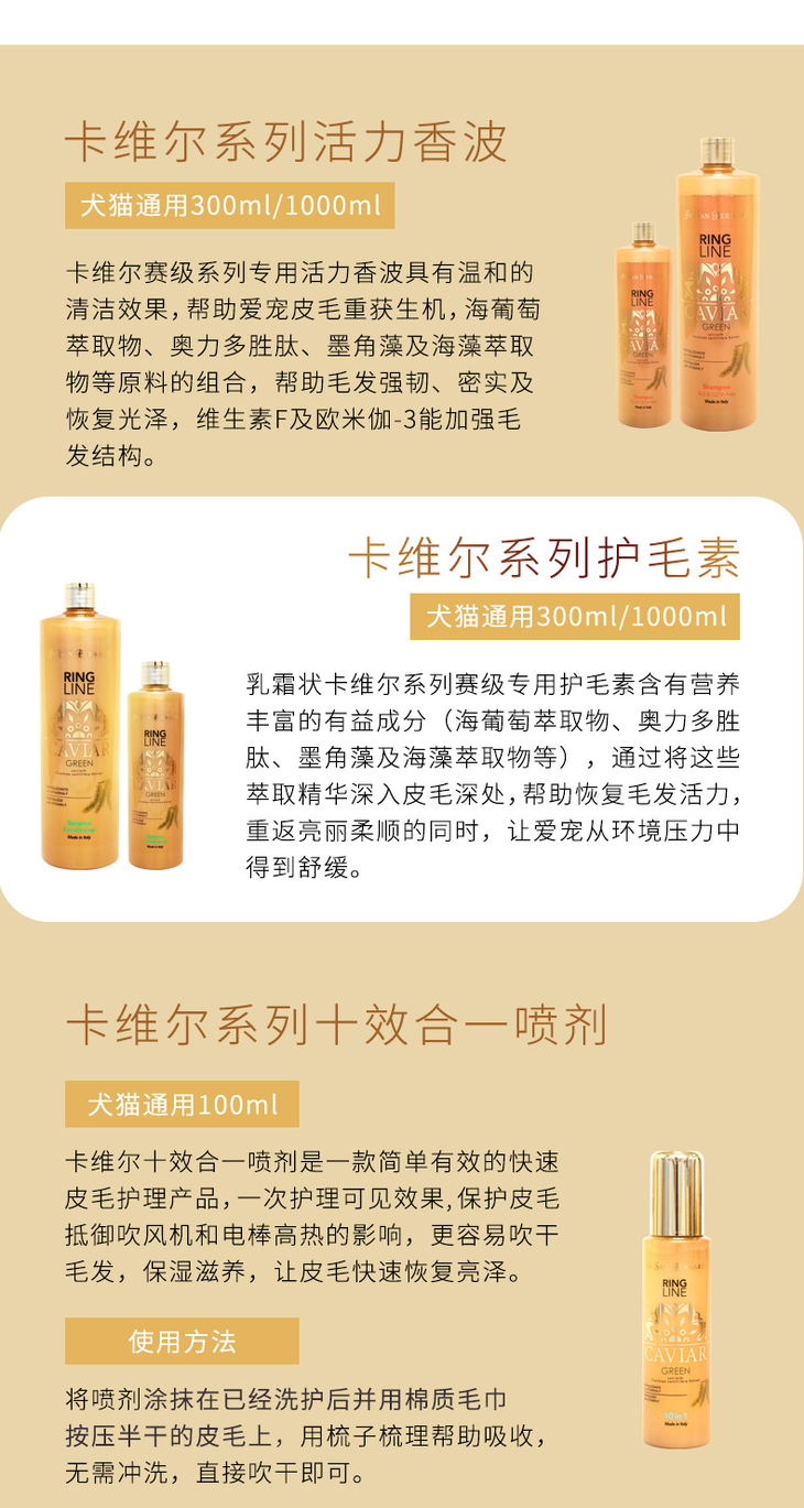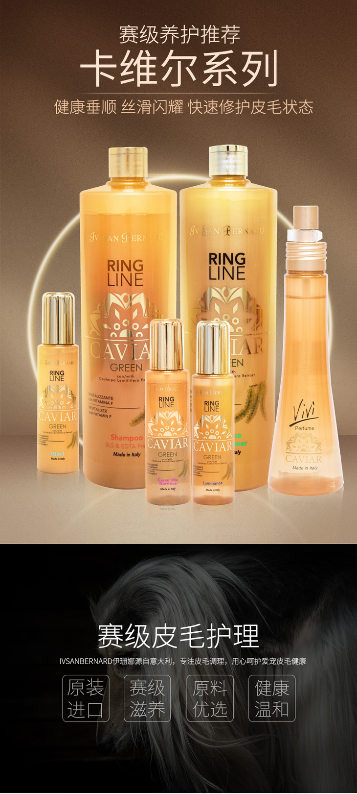 意大利伊珊娜isb卡维尔系列赛季专用活力香波/护毛素洗澡沐浴露护毛素
