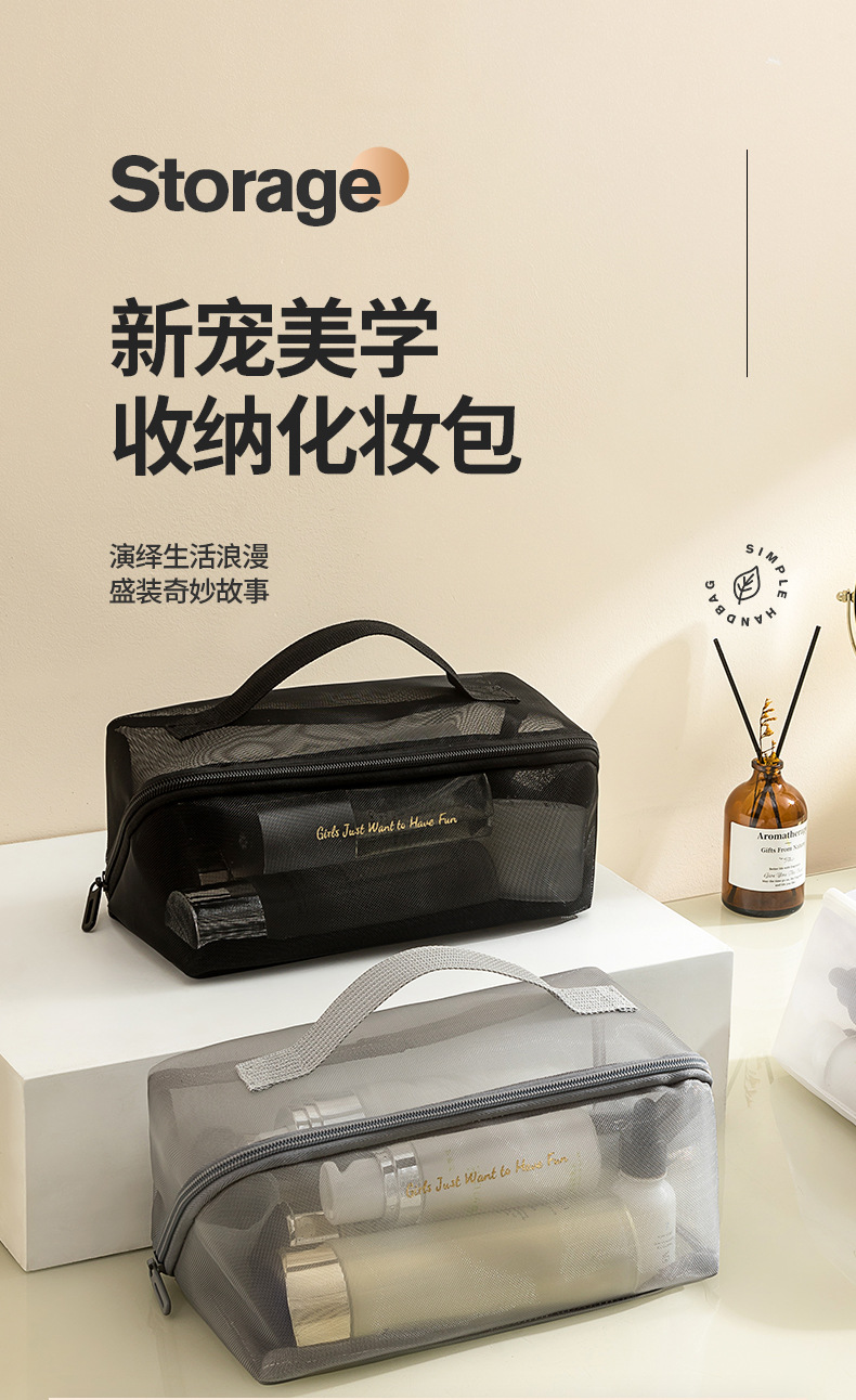 五一出行【新宠美学!收纳化妆包】大容量网纱化妆包洗漱袋化妆品收纳包出差旅行透明便携收纳袋新品。ry