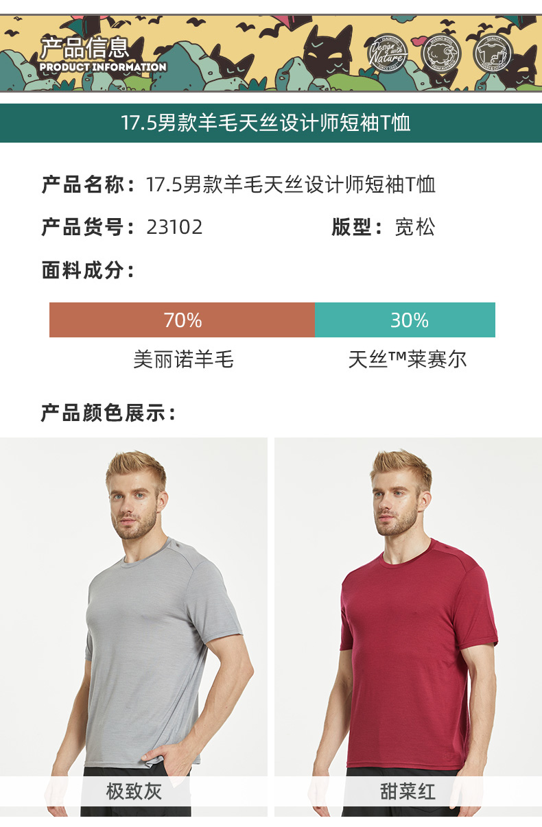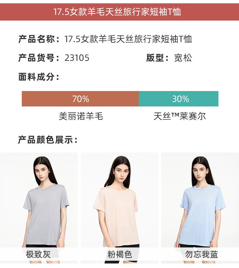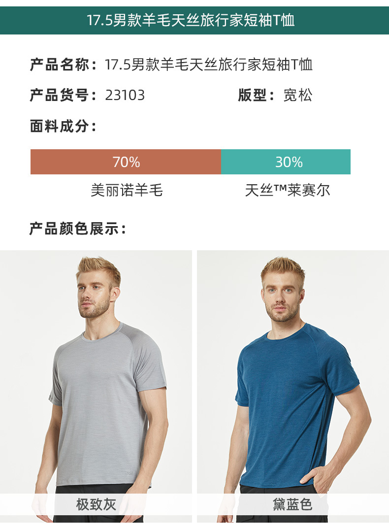 赛乐ZEALWOOD美丽诺羊毛天丝T恤短袖夏季薄款清凉透气排汗男女款