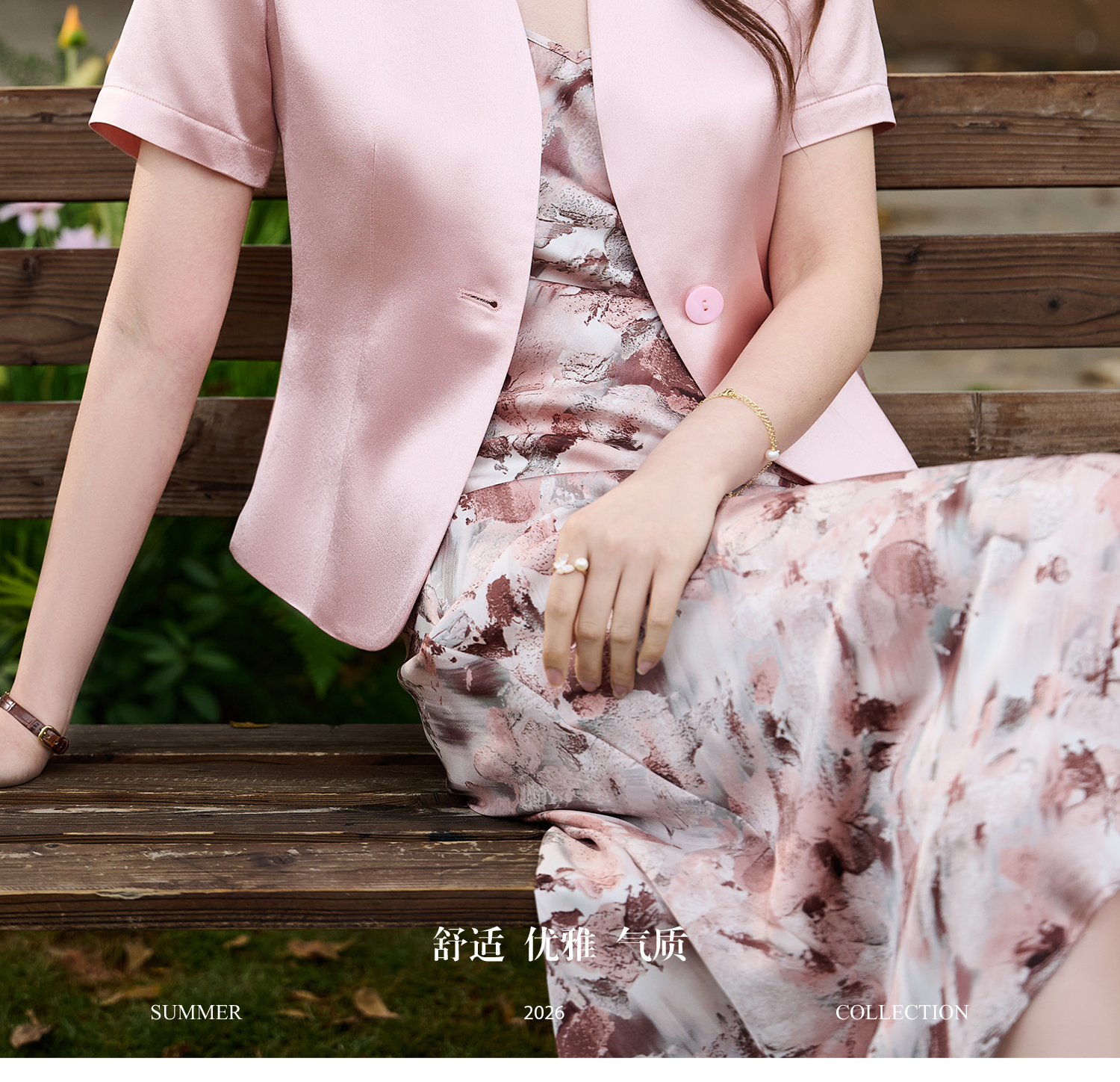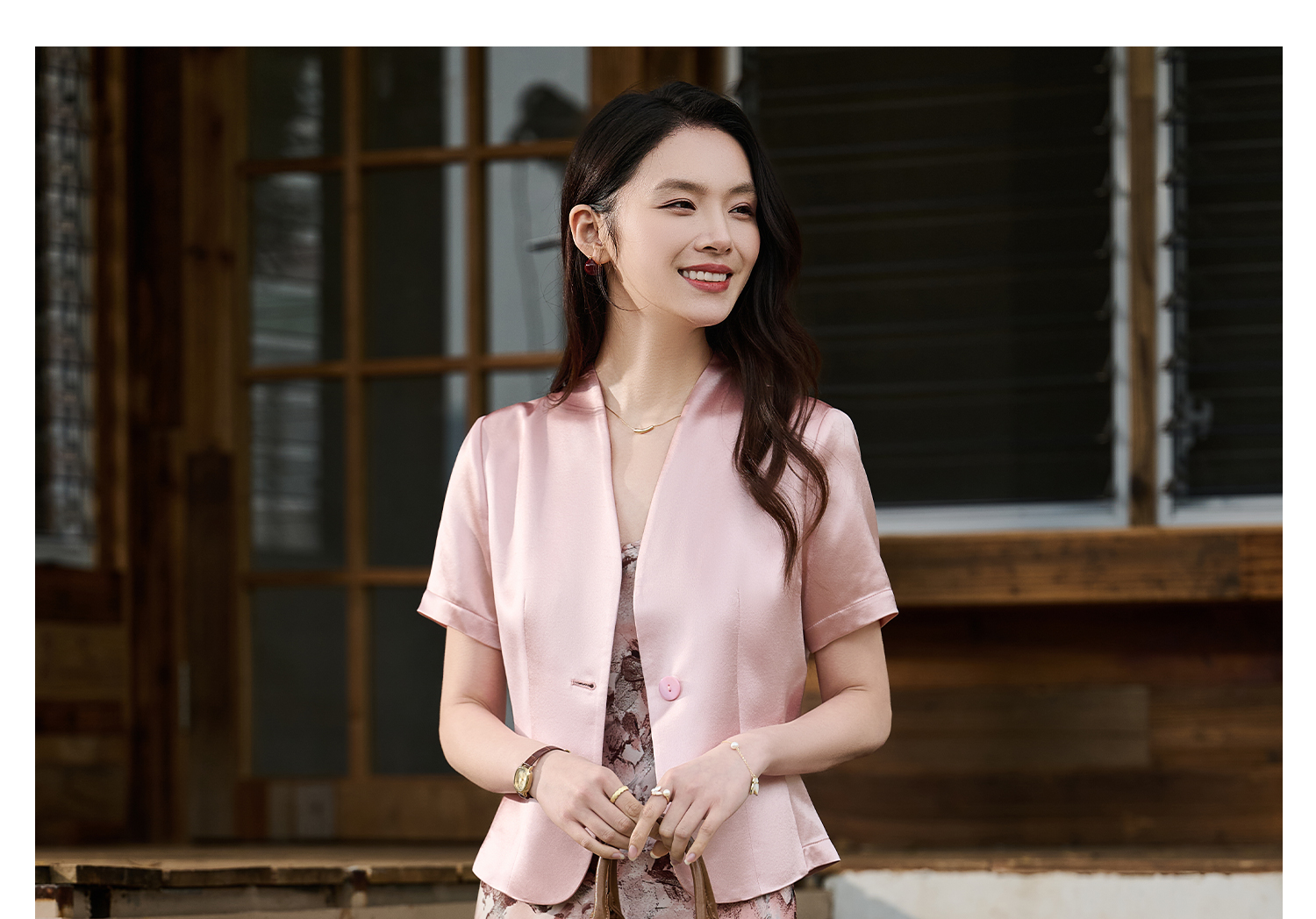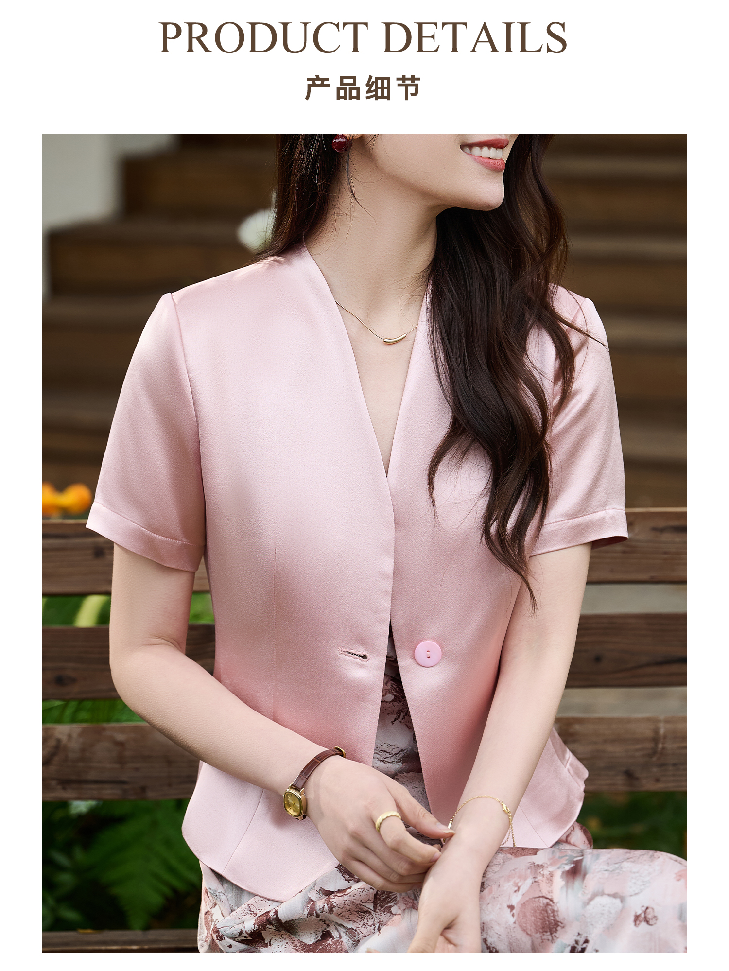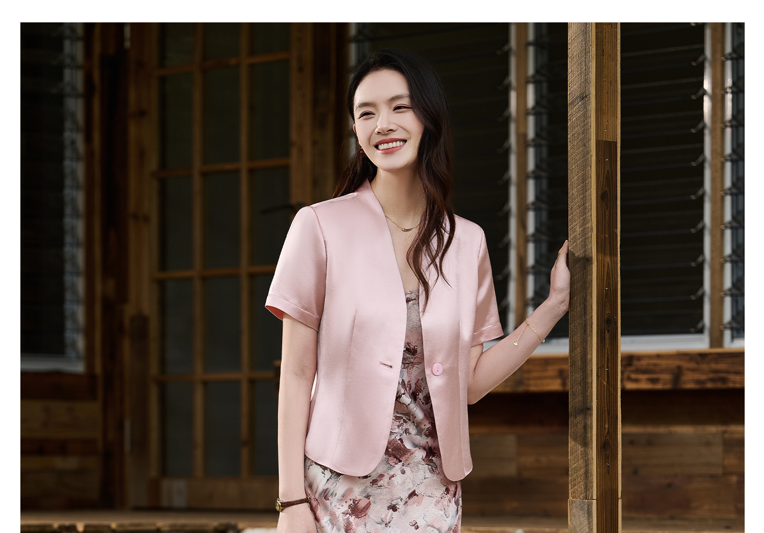 米思阳2026春夏新款通勤醋纤小西装高级感百搭短袖休闲上衣女2918