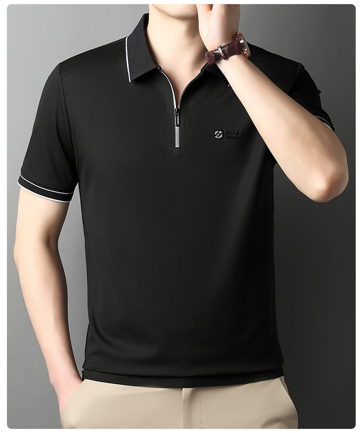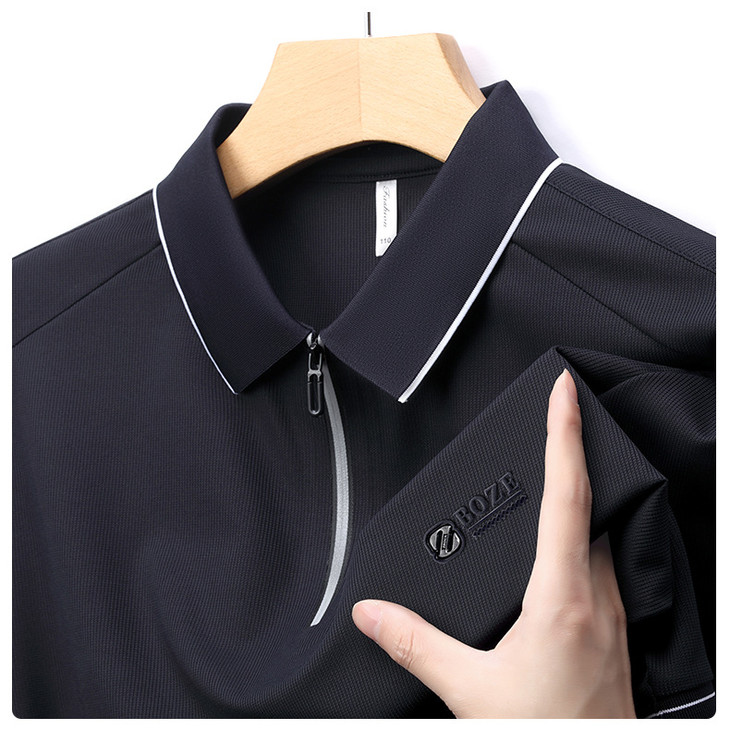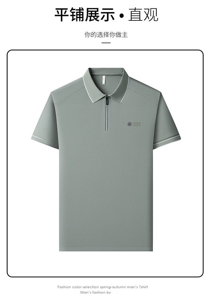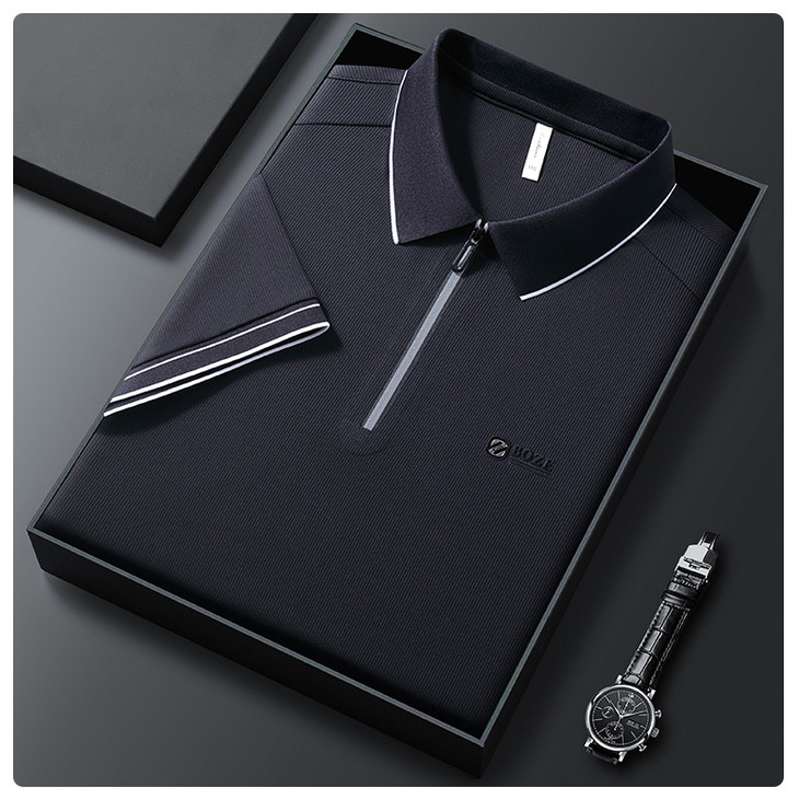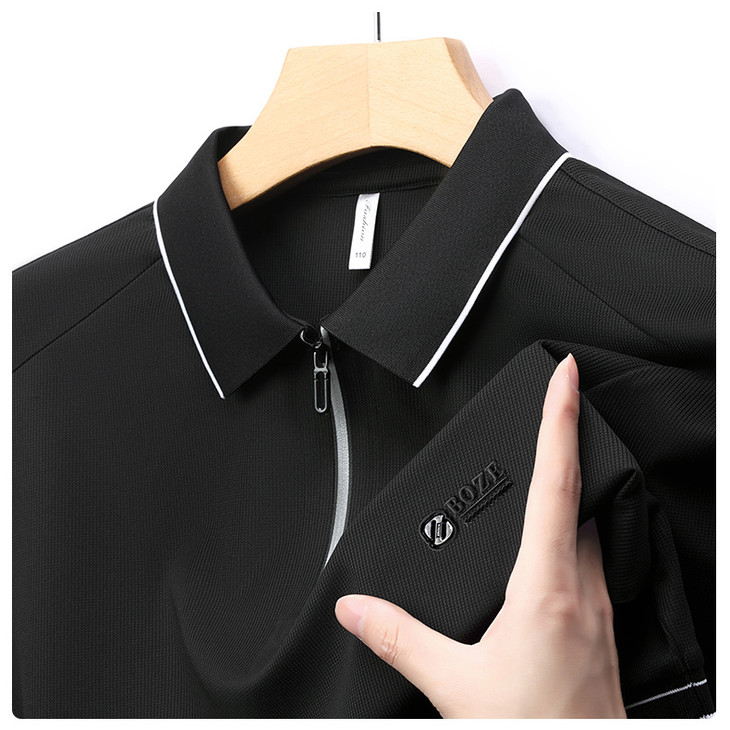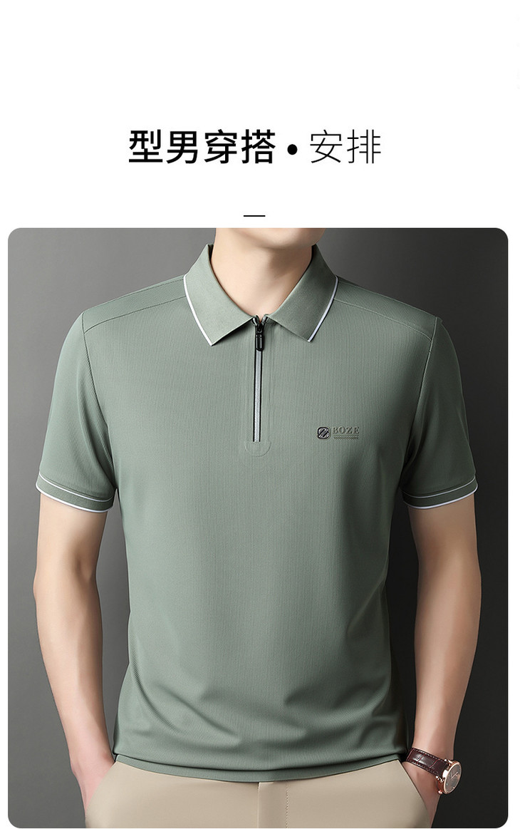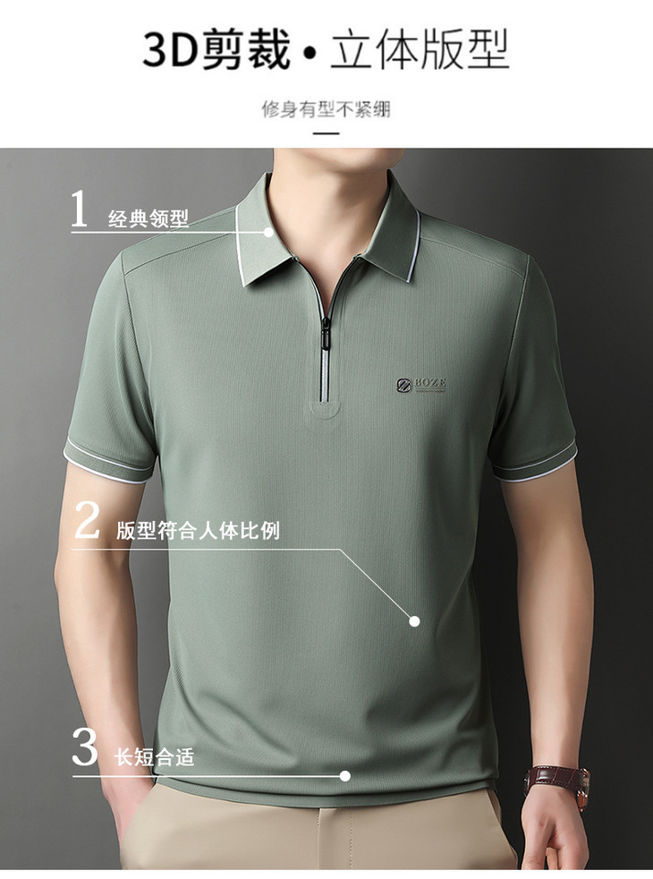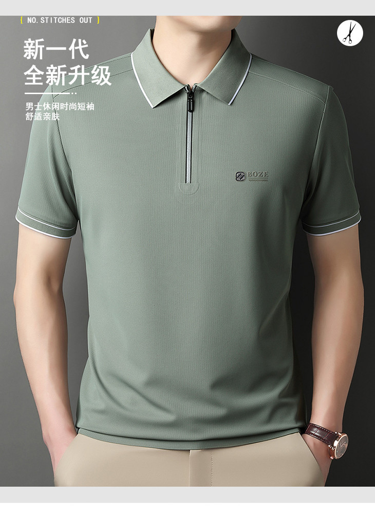 夏季新款全身无痕半拉链polo衫冰丝男士短袖POLO衫