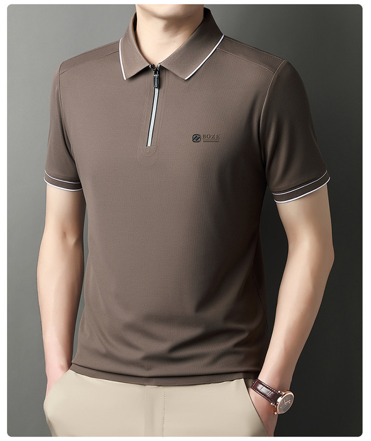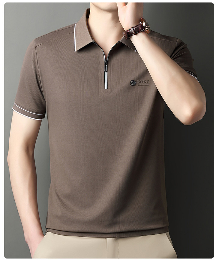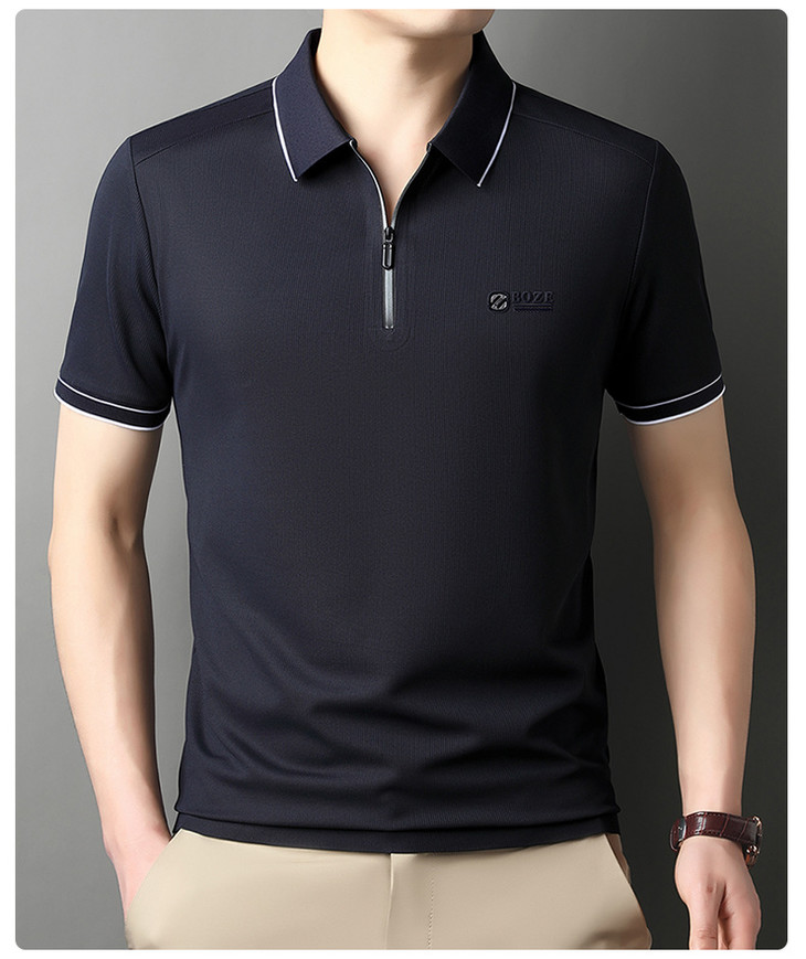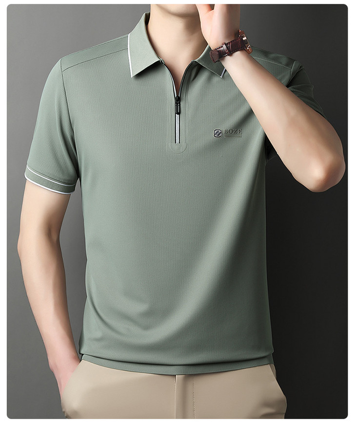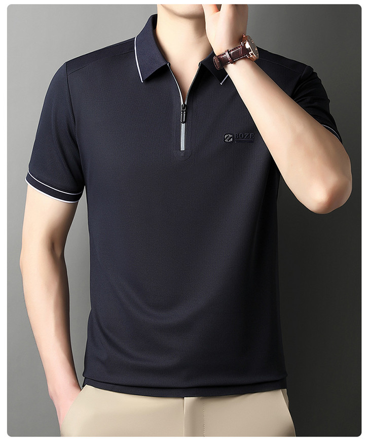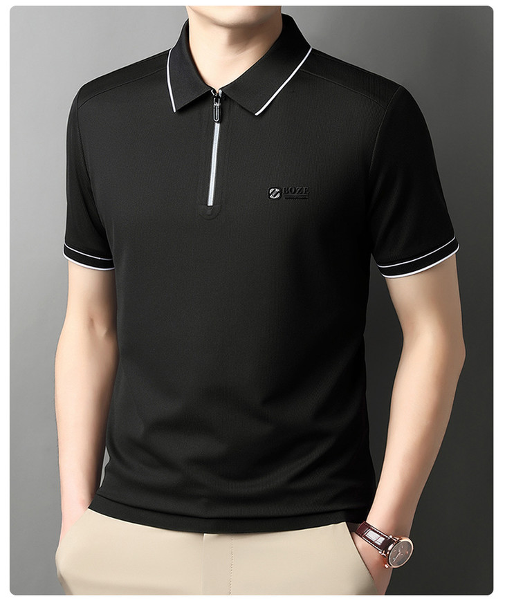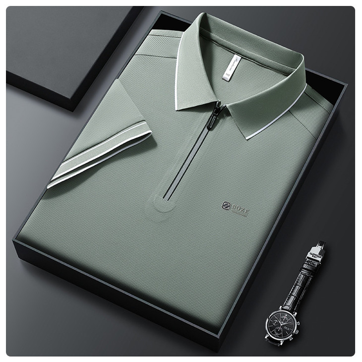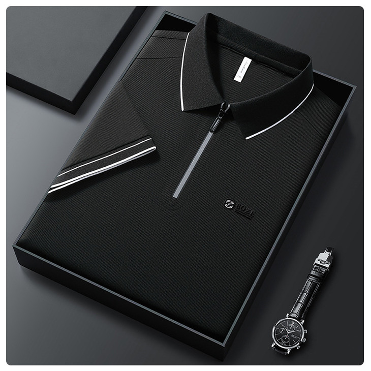 夏季新款全身无痕半拉链polo衫冰丝男士短袖POLO衫