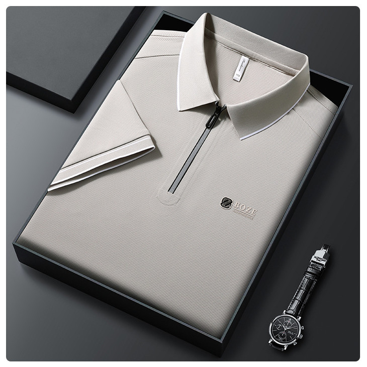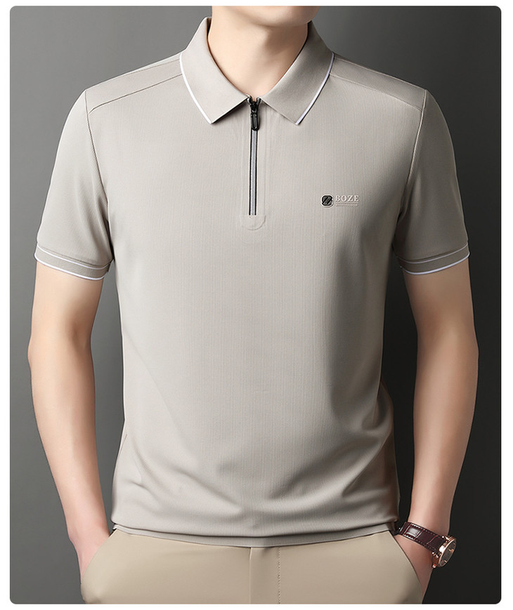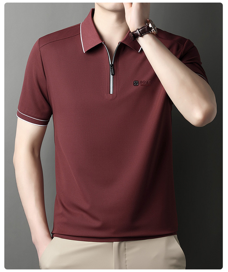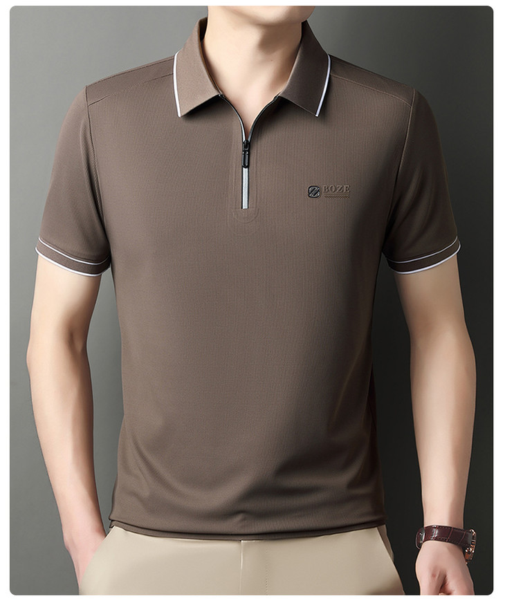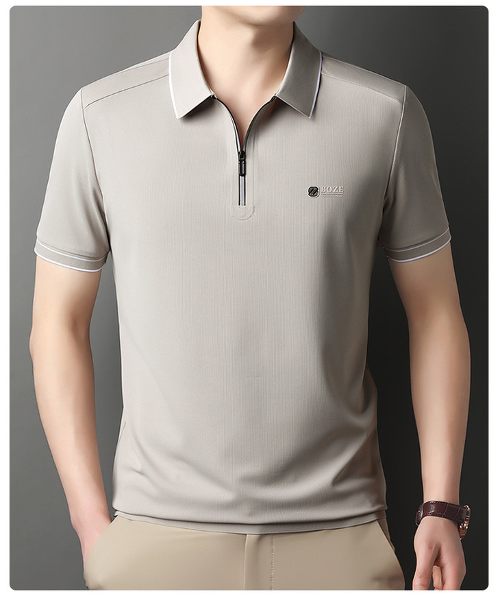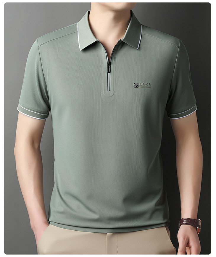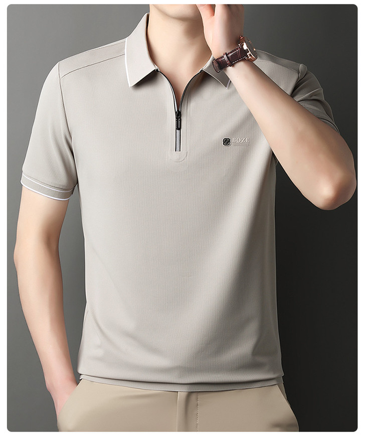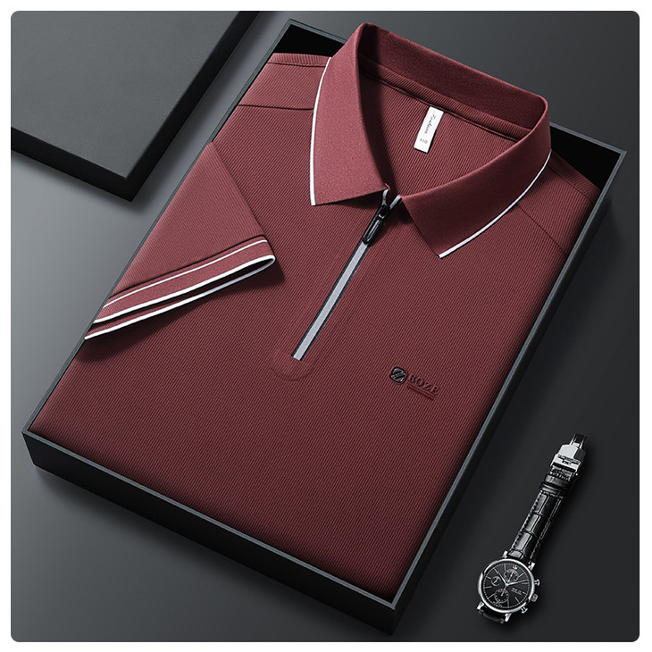 夏季新款全身无痕半拉链polo衫冰丝男士短袖POLO衫