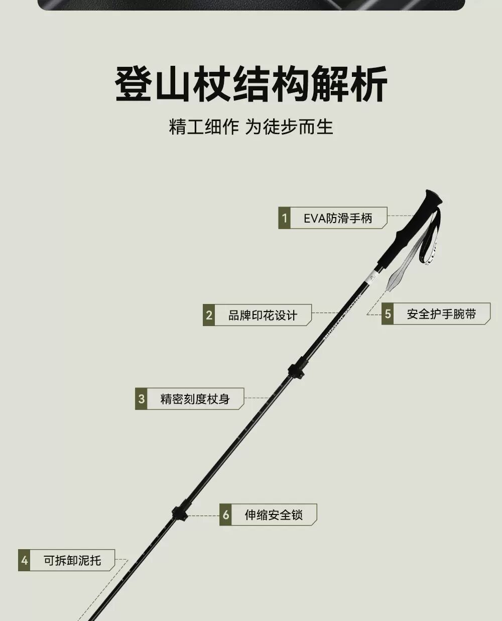 伯希和户外登山杖超轻碳素伸缩手杖男专业爬山装备碳纤维女徒步