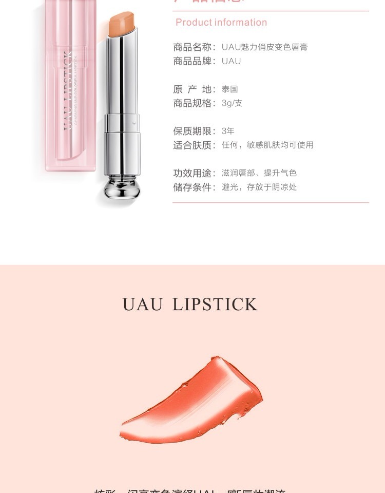 【中欧班列精选】泰国进口 MMT UAU变色唇膏3g/支