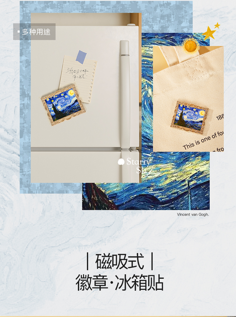 大英博物馆梵高星空冰箱贴徽章两用高级感个性艺术创意文艺礼物