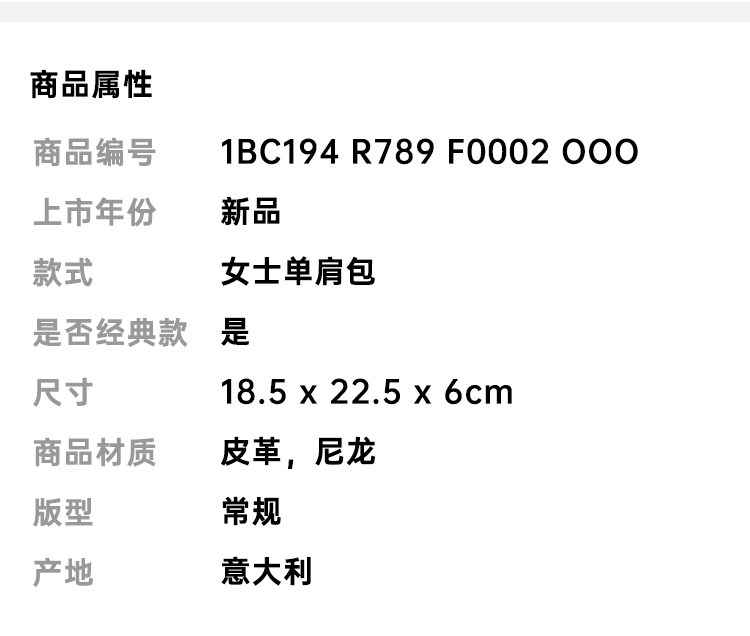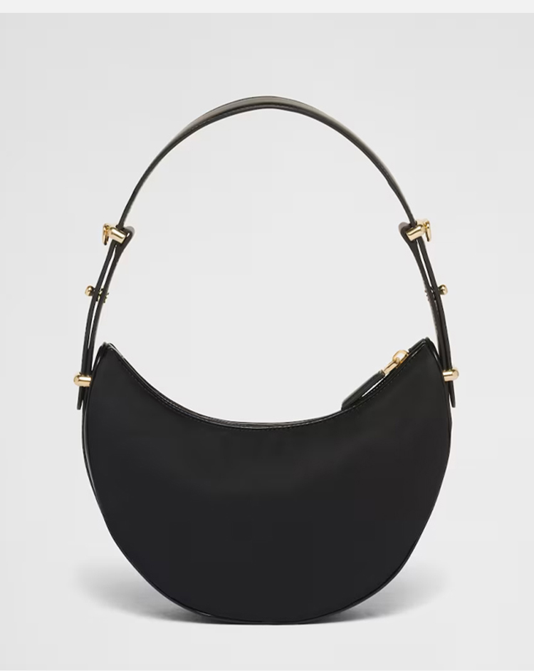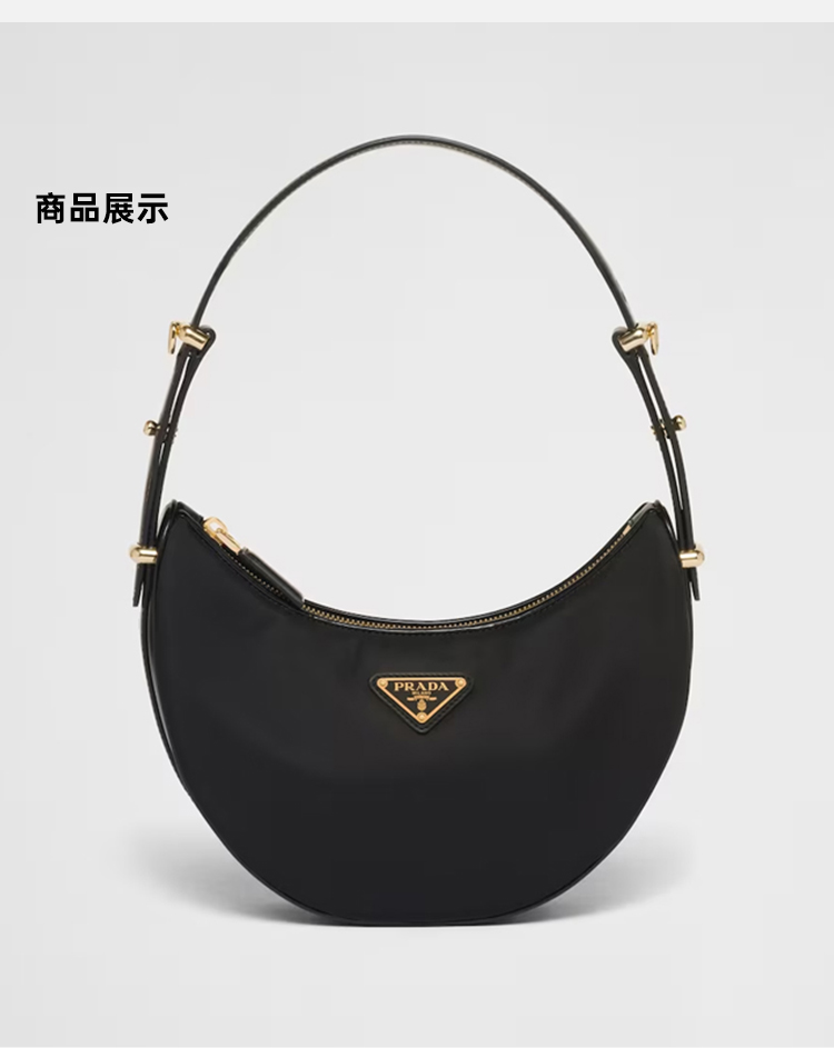 PRADA 普拉达 女士珐琅金属三角徽标 Arqué 尼龙与亮面皮革单肩包 黑色 1BC194 R789 F0002 OOO