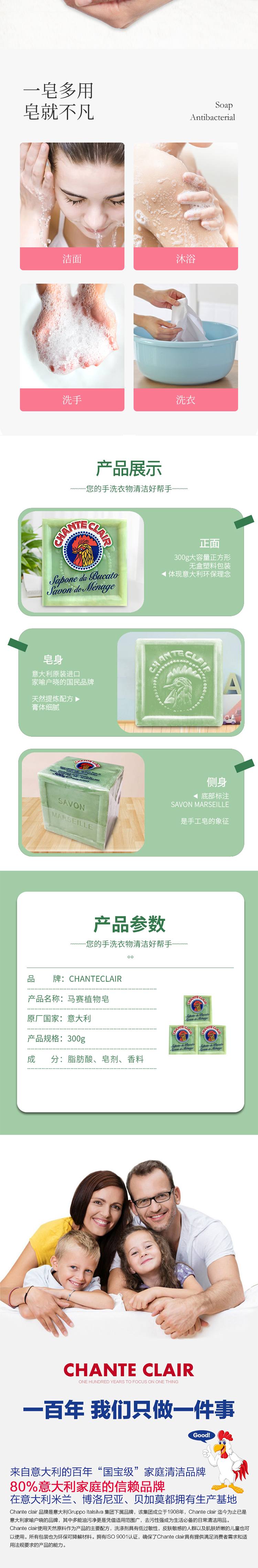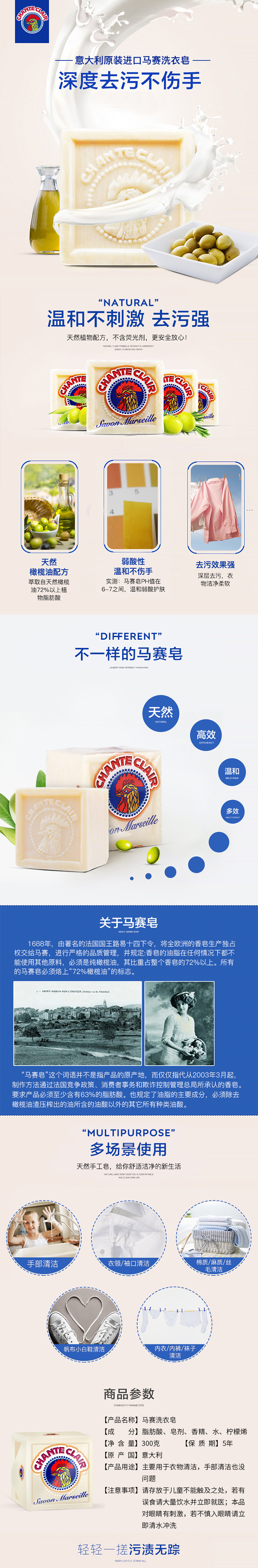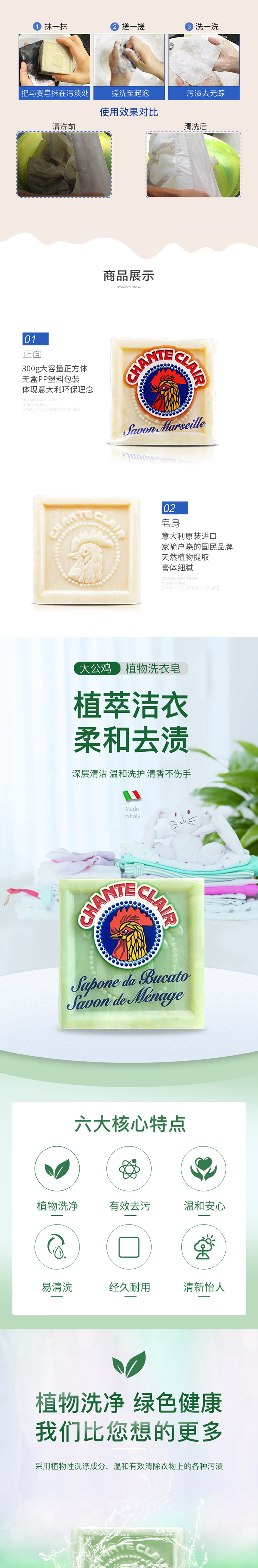 意大利进口大公鸡管家马赛洗衣皂300g