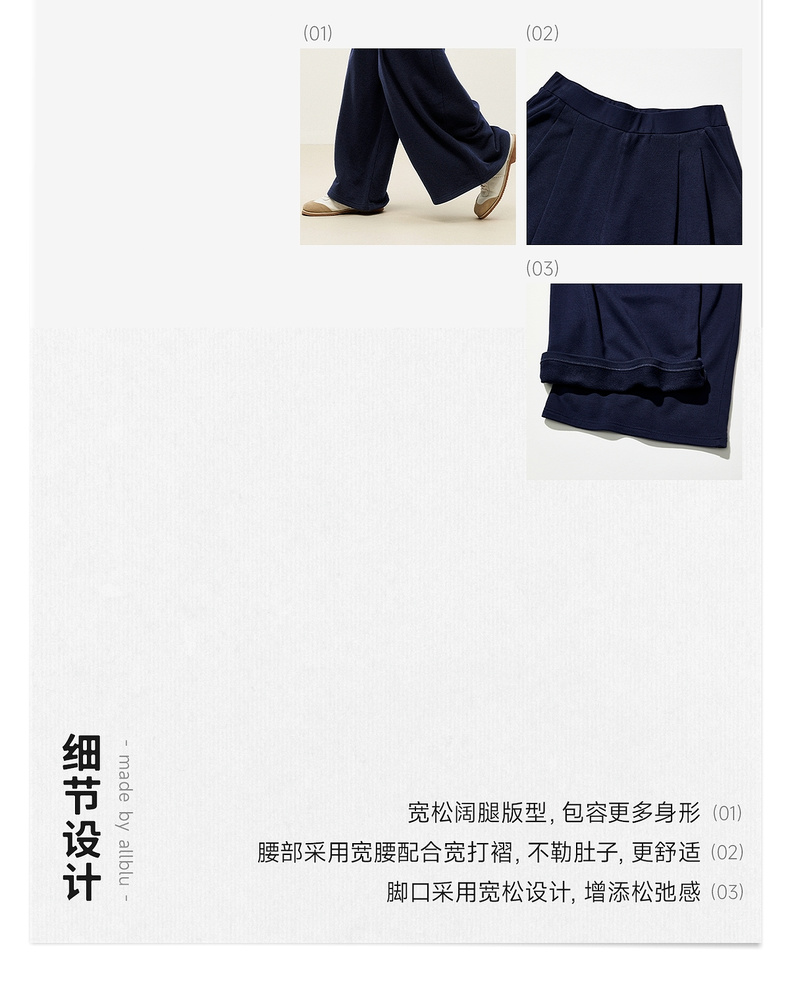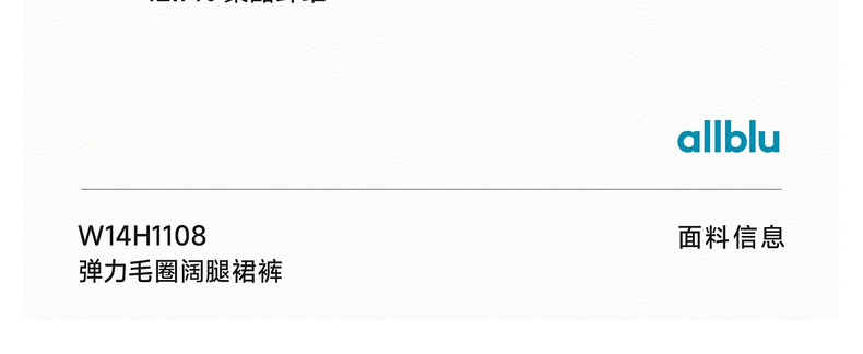 allblu幼岚弹力毛圈阔腿裙裤,春季女士裤子,亲肤透气舒适 商品图4