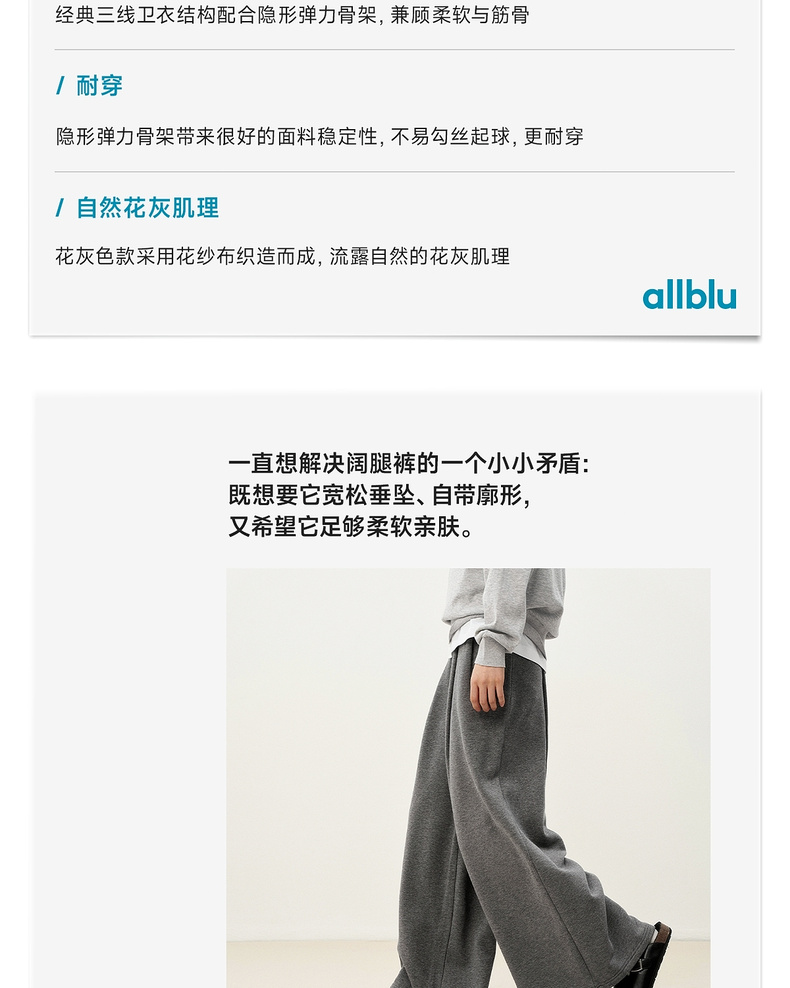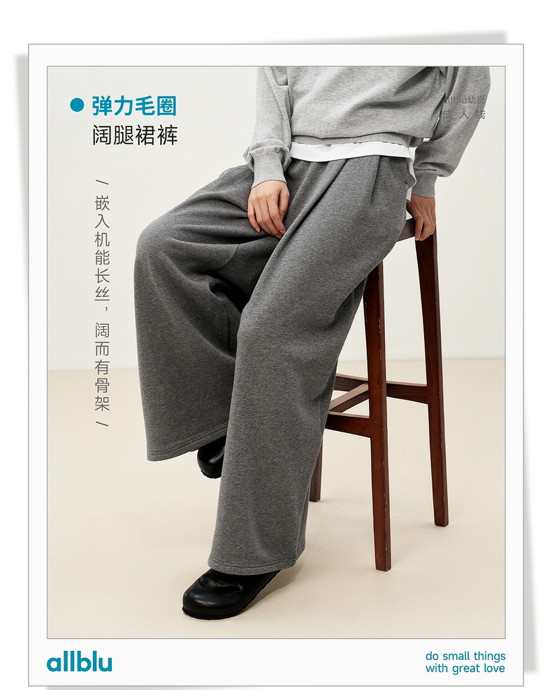 allblu幼岚弹力毛圈阔腿裙裤,春季女士裤子,亲肤透气舒适