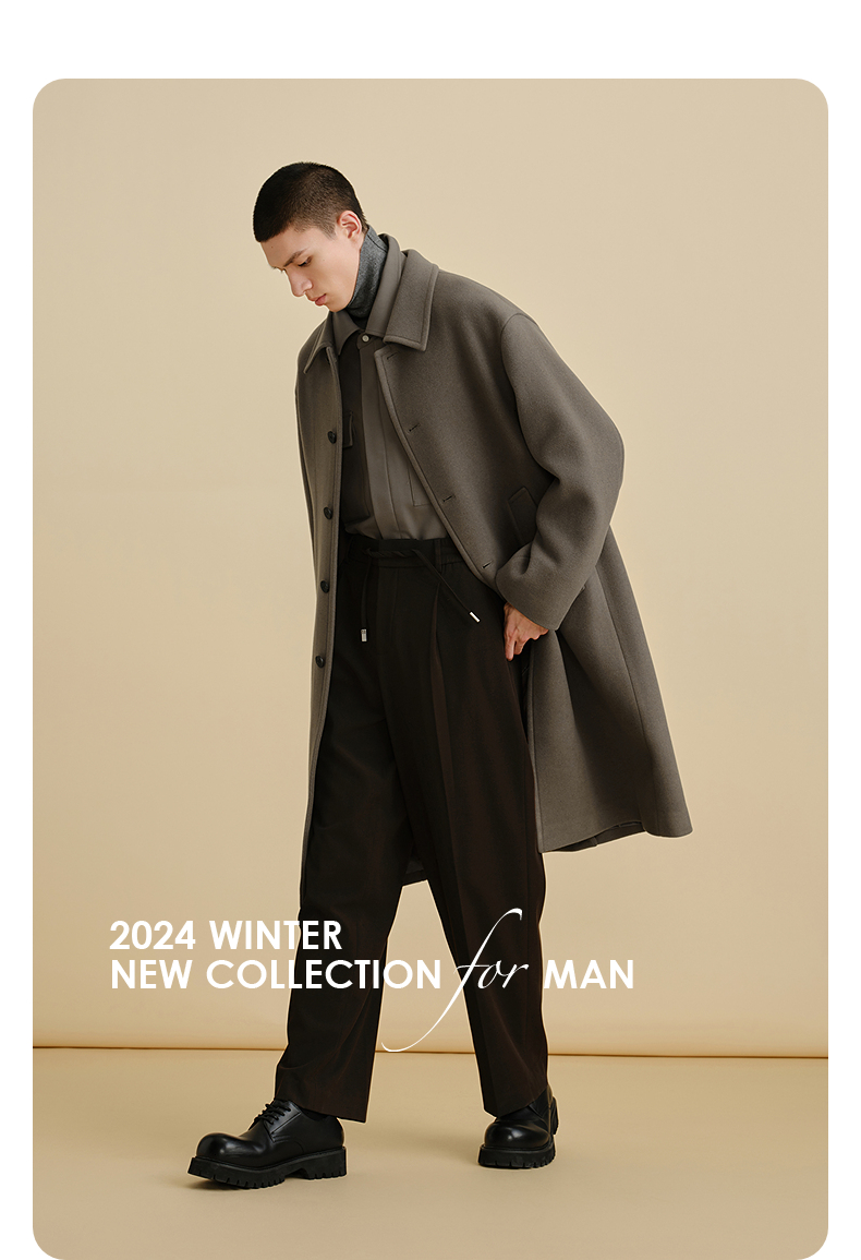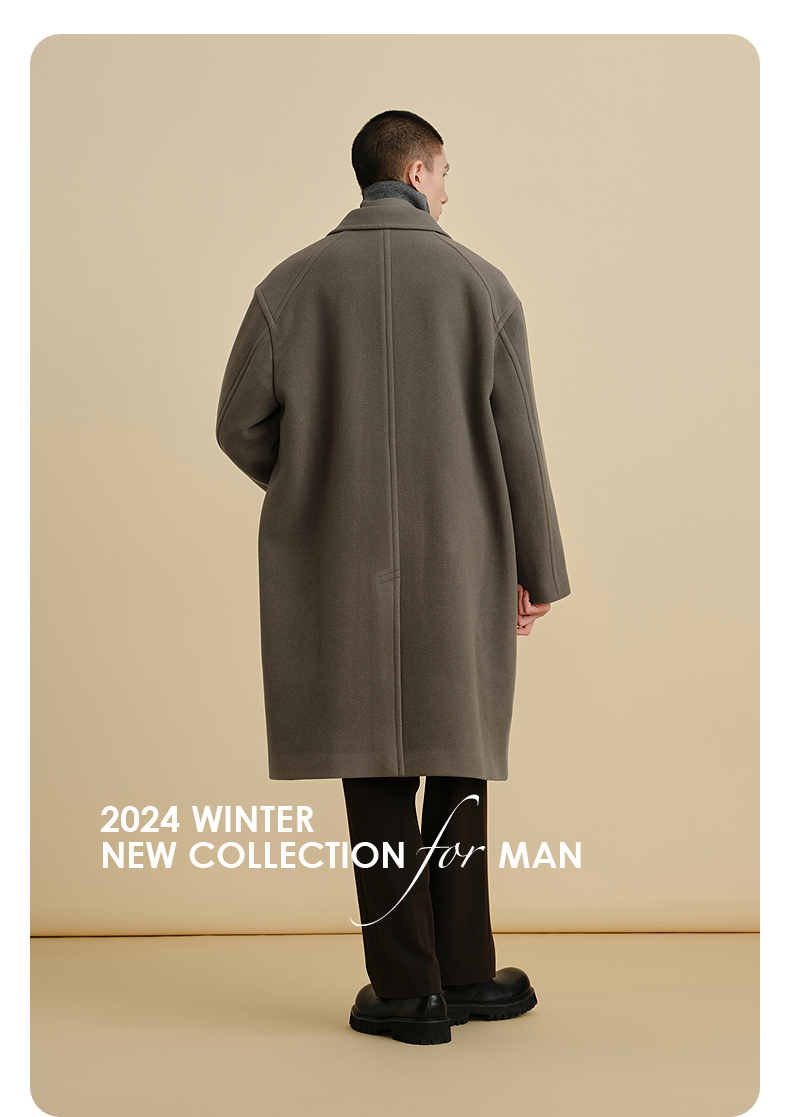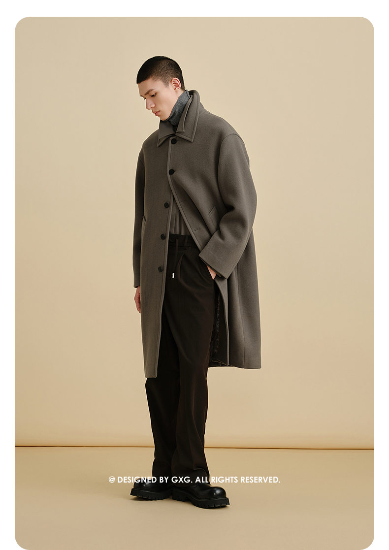 GXG男装 深卡其宽松保暖通勤长款大衣24冬热卖G24X264007