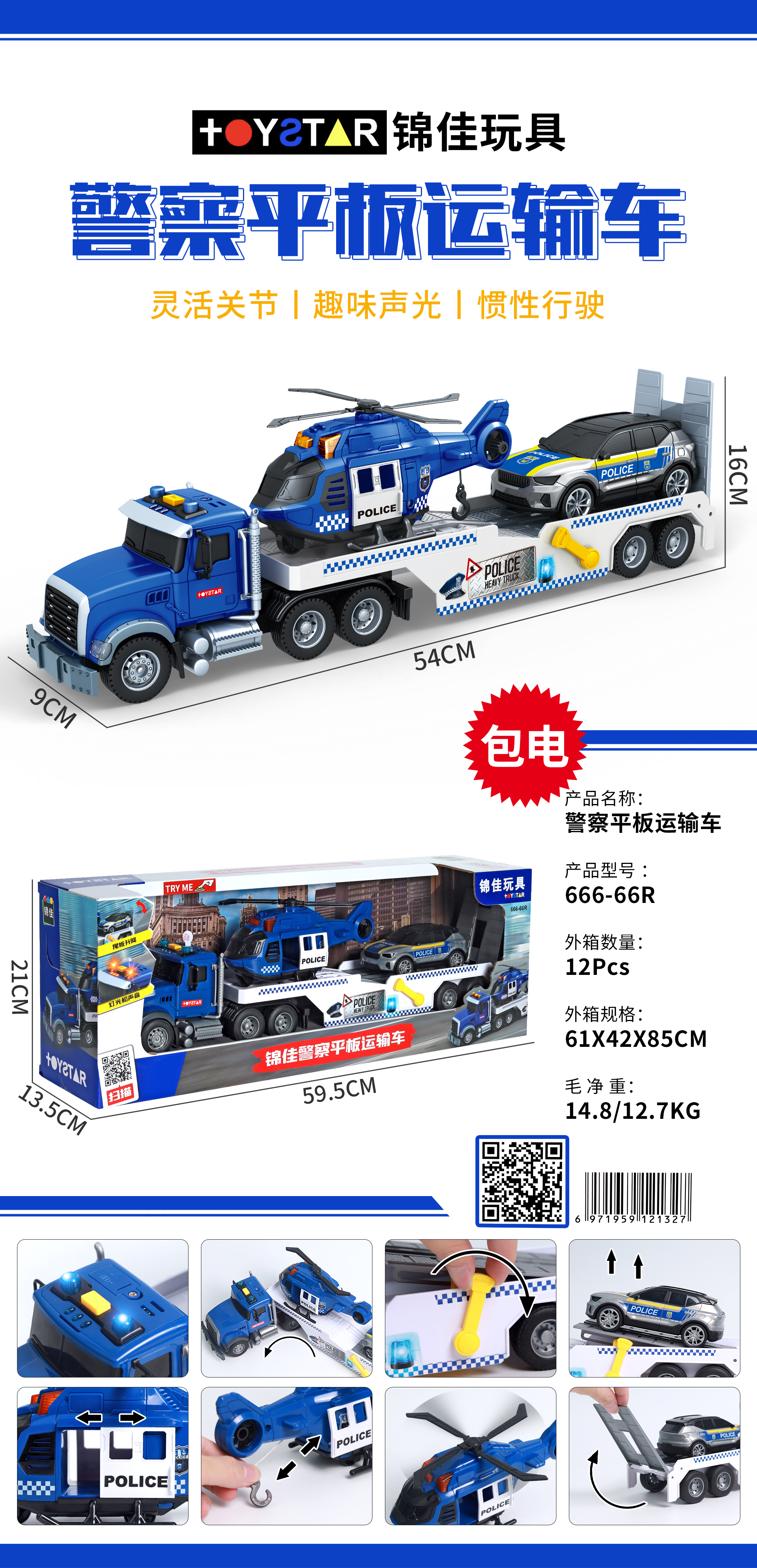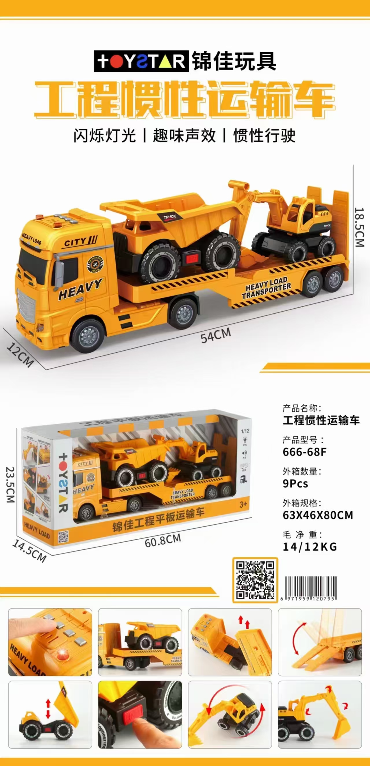 锦佳大号消防平板拖车运输工程救援儿童喷水玩具汽车男孩直升飞机