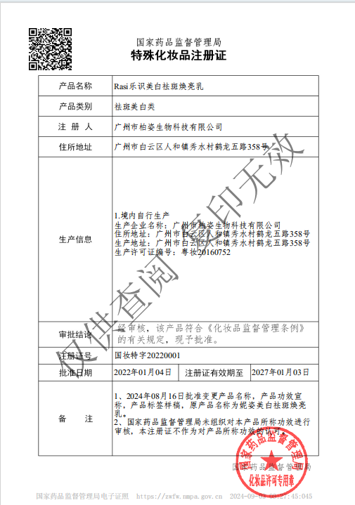 【云露专享】Rasi乐识祛斑美白柔肤精华水乳