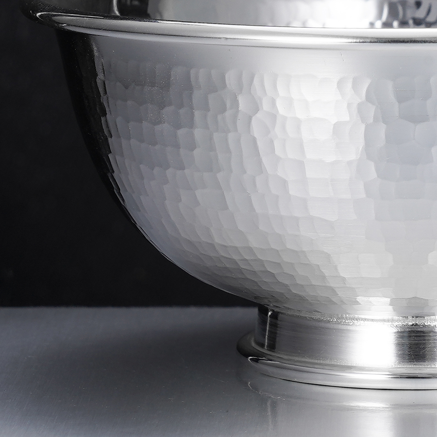 【寓意】:银碗采用足银静制,内里抛光打磨,外壁施以锤纹工艺,使其呈现细腻的超然质感。寓意感悟生命的静好,收获纯粹的喜悦。