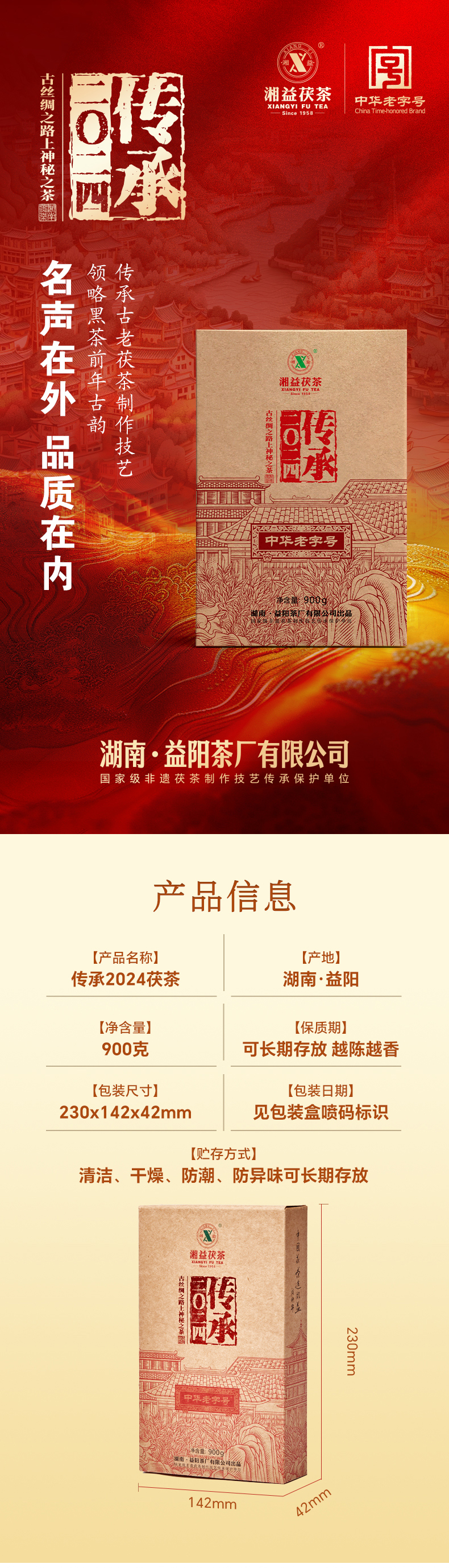 安化黑茶 | 湘益 2024年 传承金花茯砖茶 900g