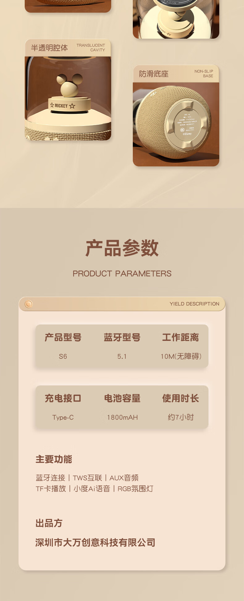 迪士尼小度蓝牙音箱无线户外便携音响 SYX