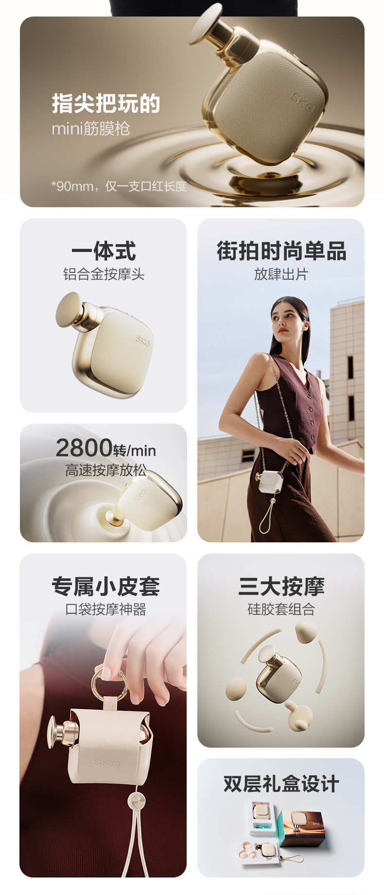 SKG筋膜枪便携按摩仪专业级筋膜枪肌肉按摩器全身颈椎肩颈腰腿运动 生日高端礼物送男女友父母亲 【时尚小巧】F3min
