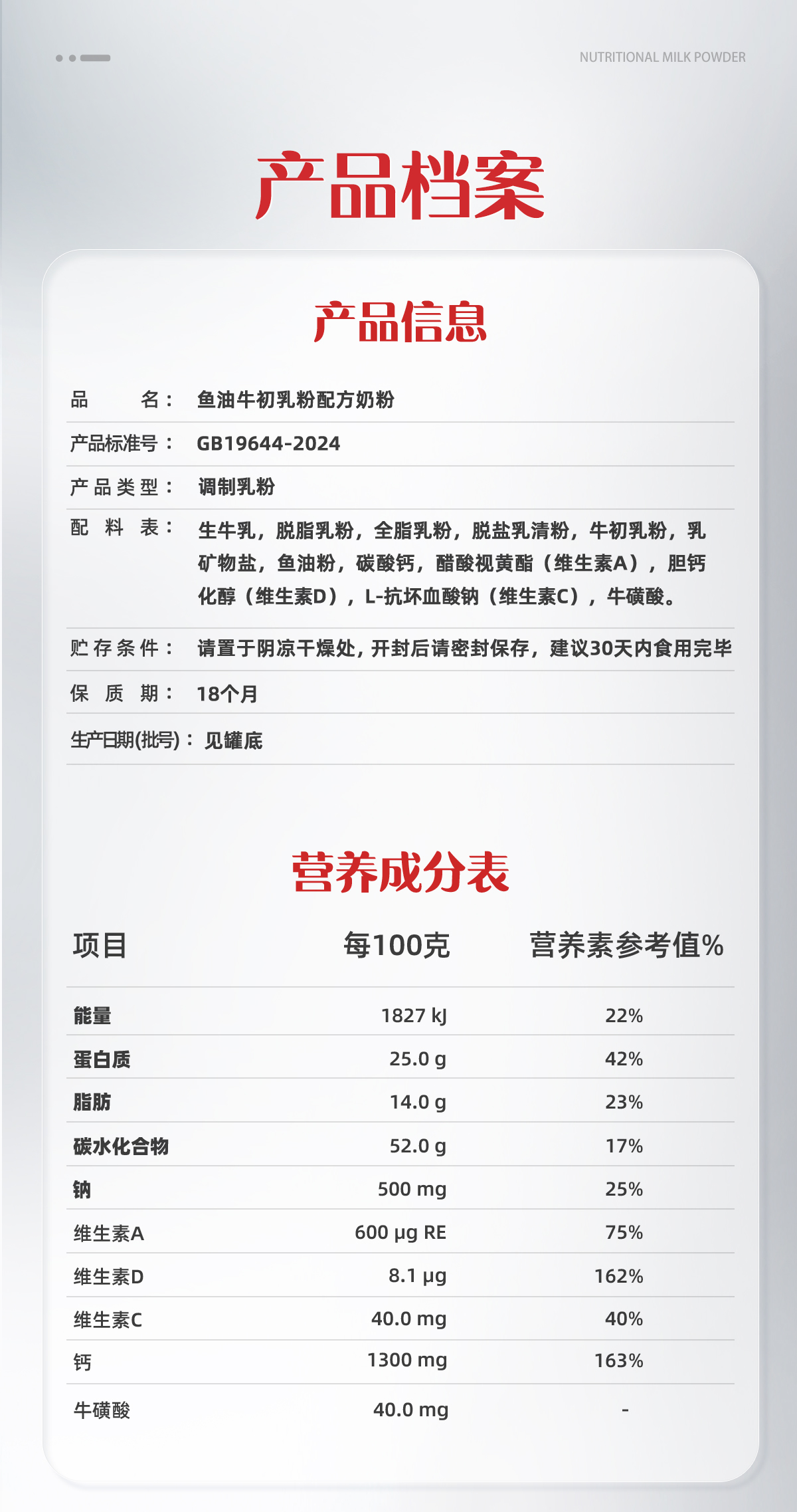 认养一头牛鱼油牛初乳奶粉800g/800g*2
